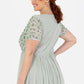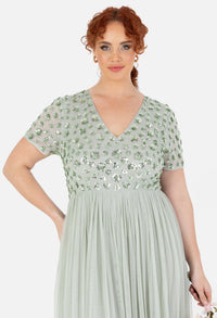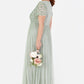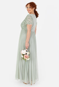 Introducing our latest bridesmaid design new year’s interpretation of Maya's timeless embellishments and ruffled hemlines. A classic V neckline bodice is adorned with delicate floral motifs hand embellished with sequins and bead accents. Remaining true to Maya's traditional bridesmaid style the tulle maxi skirt gracefully flares from the cinched waist falling into a flattering A-line silhouette. Complete the look by pairing this floor-sweeping Sage Green dress with barely-there heels and dainty earrings. This dress is also perfect for other special occasions such as award ceremonies evening balls and red-carpet events.