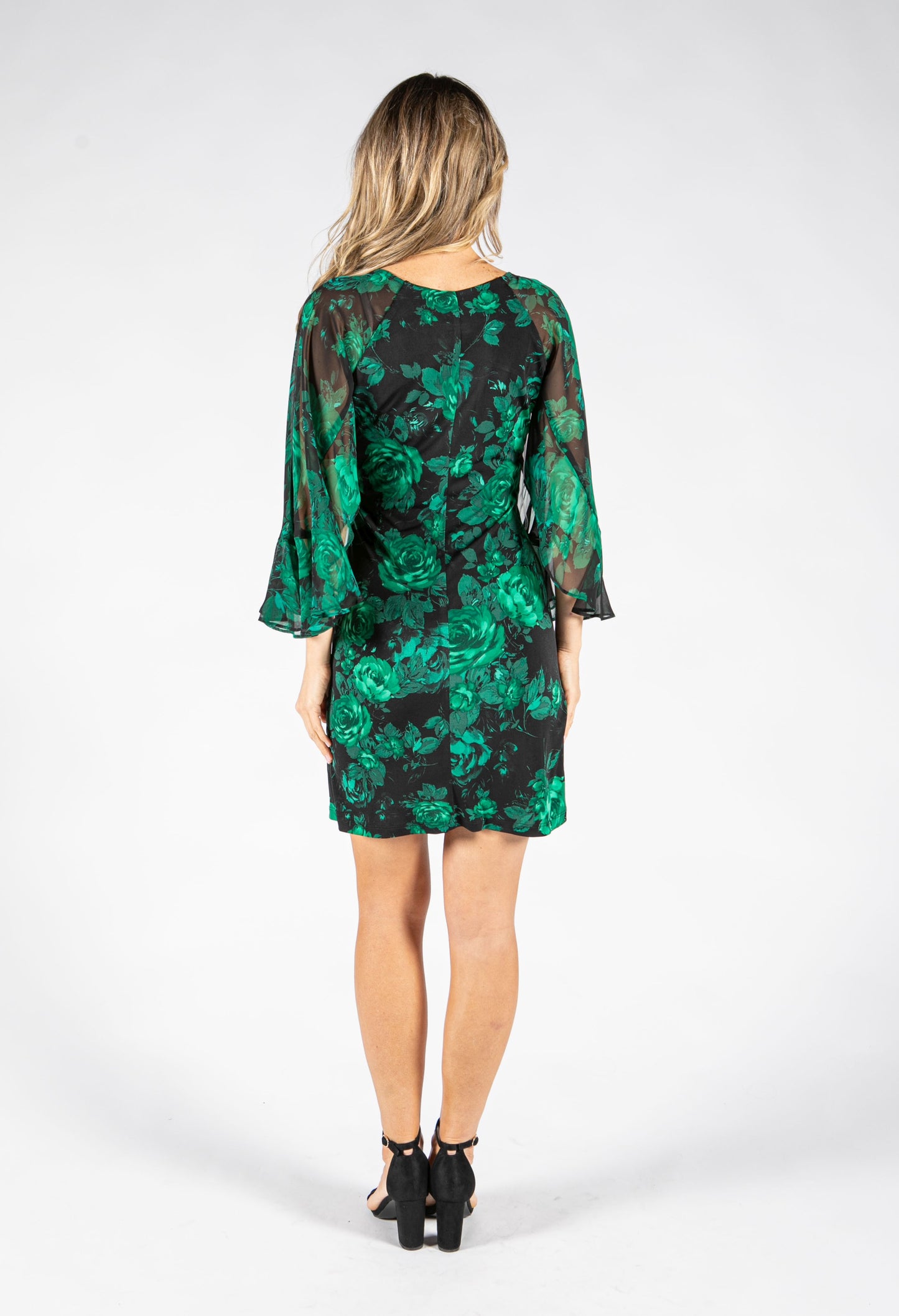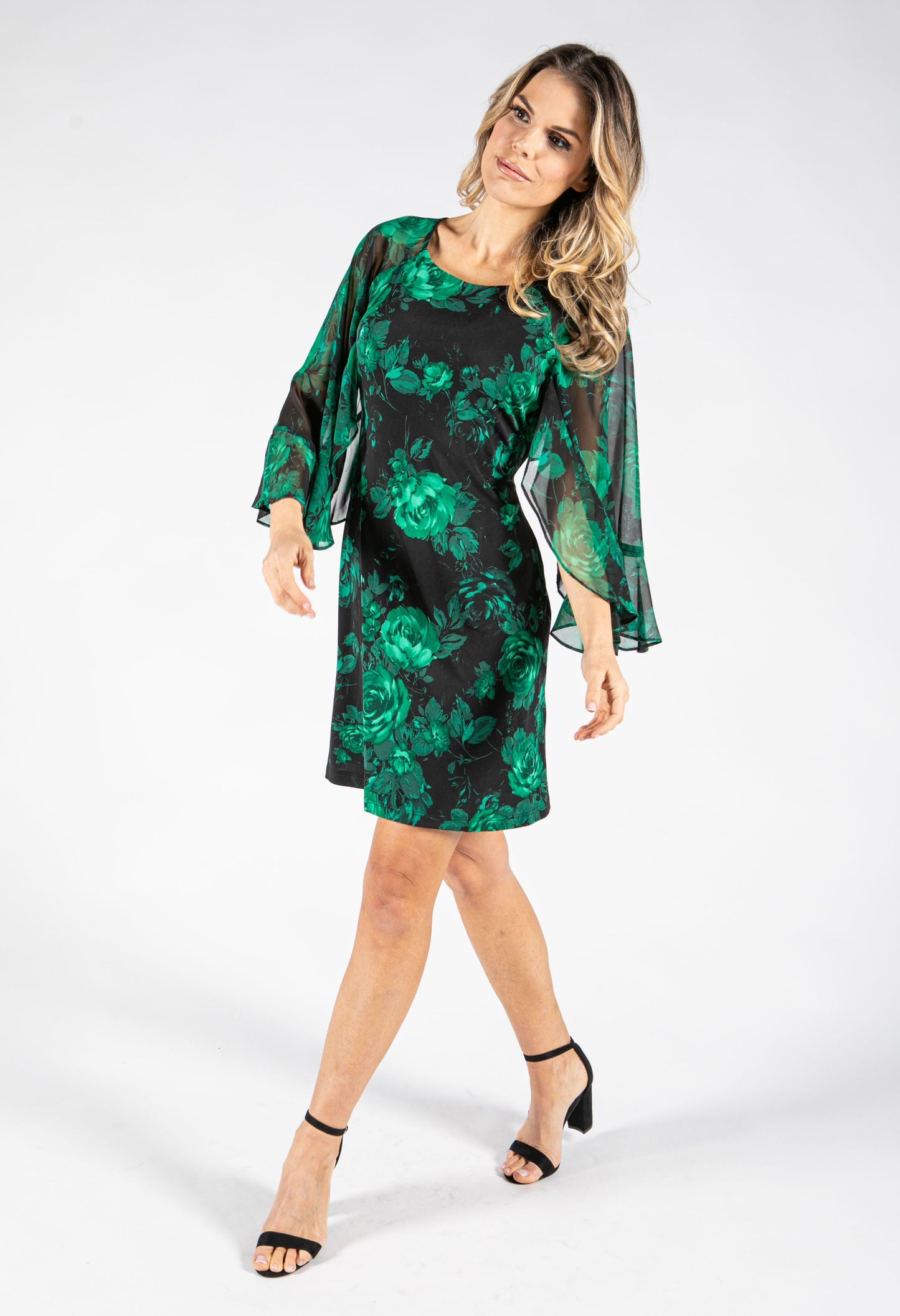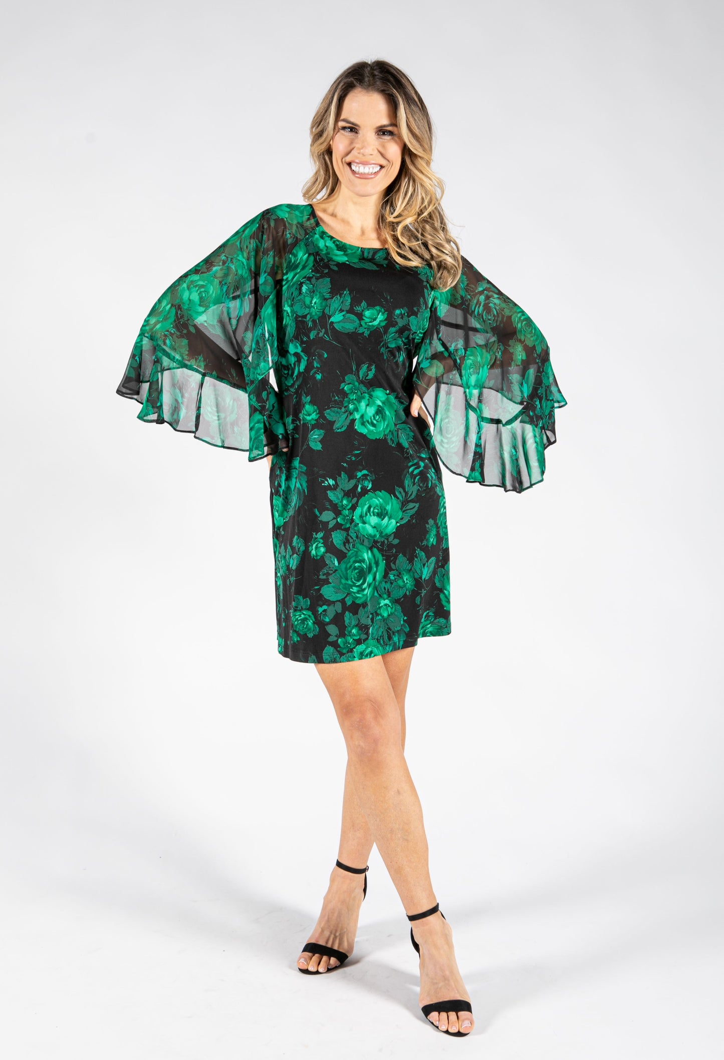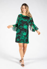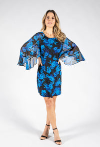 Pamela Scott Floral Print Angel Sleeve Dress