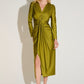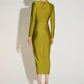 Introducing the Joseph Ribkoff midi bodycon dress, a perfect blend of feminine and sexy style. Featuring a sophisticated v-neck and elegant long, straight sleeves, this dress is designed for formal occasions and night outs. The ruched, draped, and belted details add a touch of sophistication to its plain pattern, making it a must-have addition to your wardrobe.