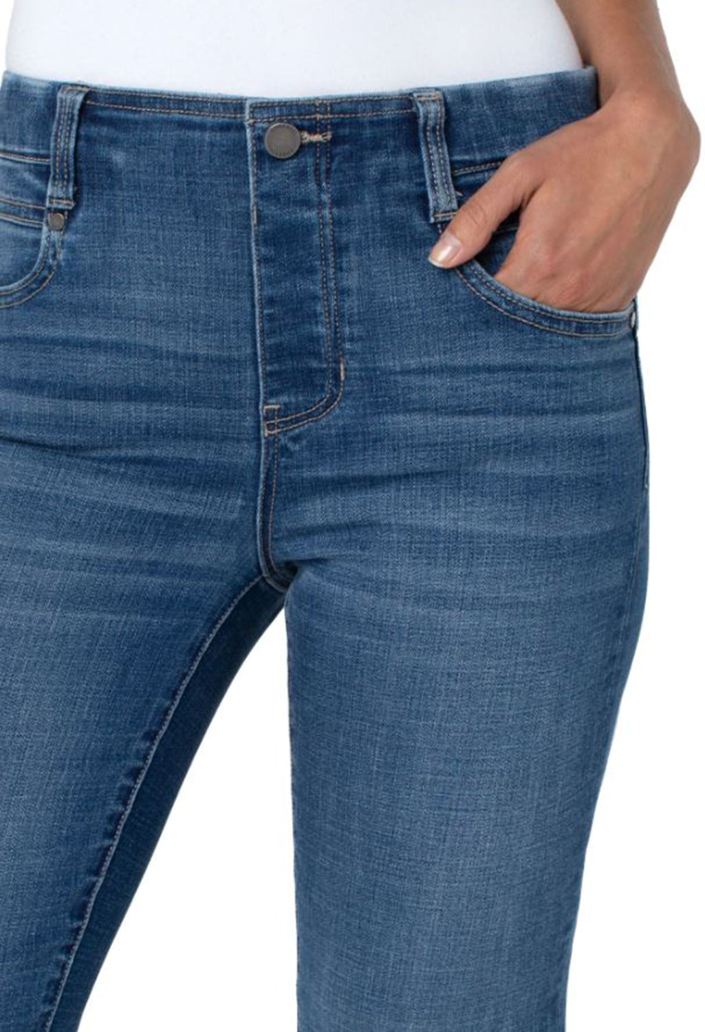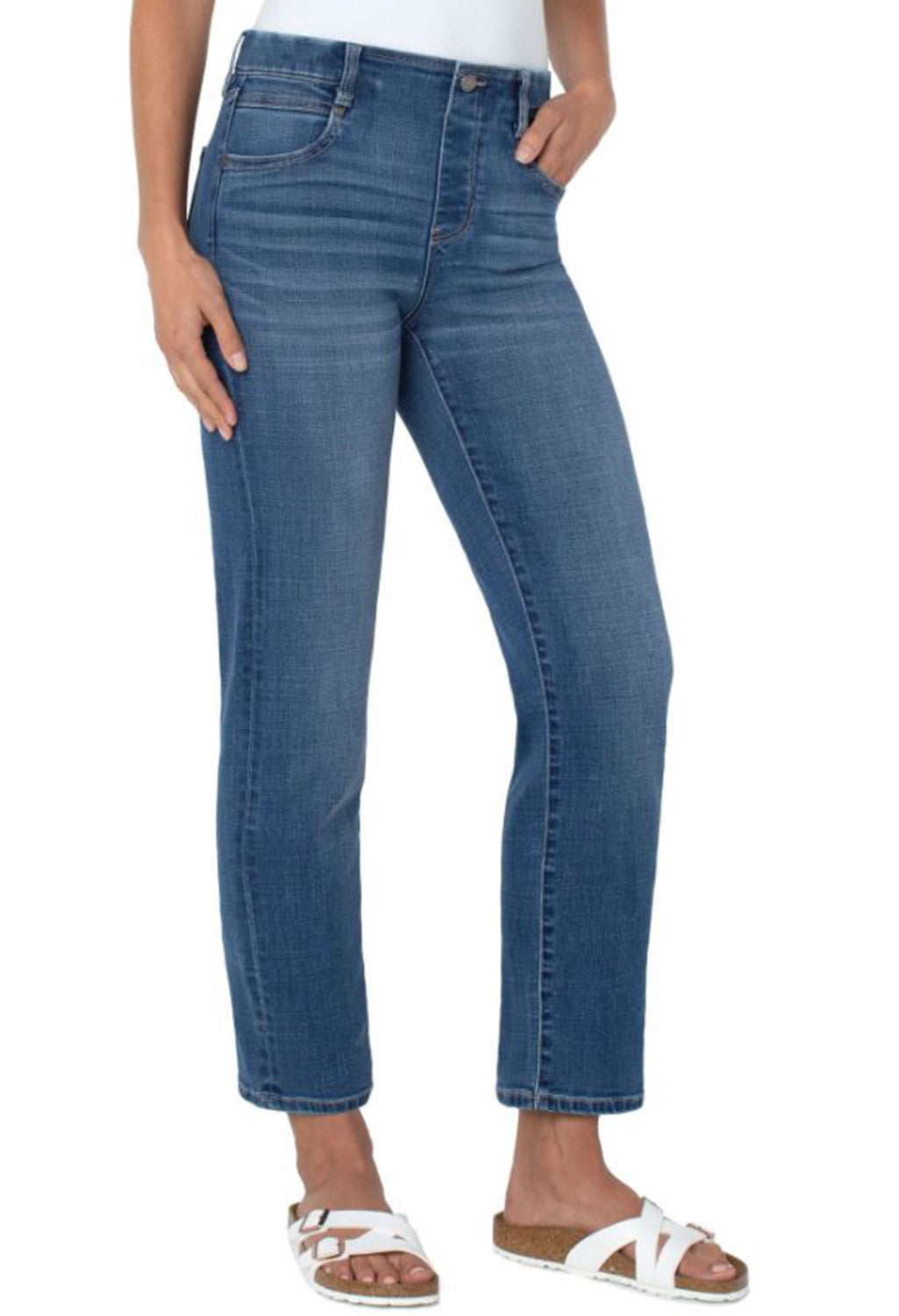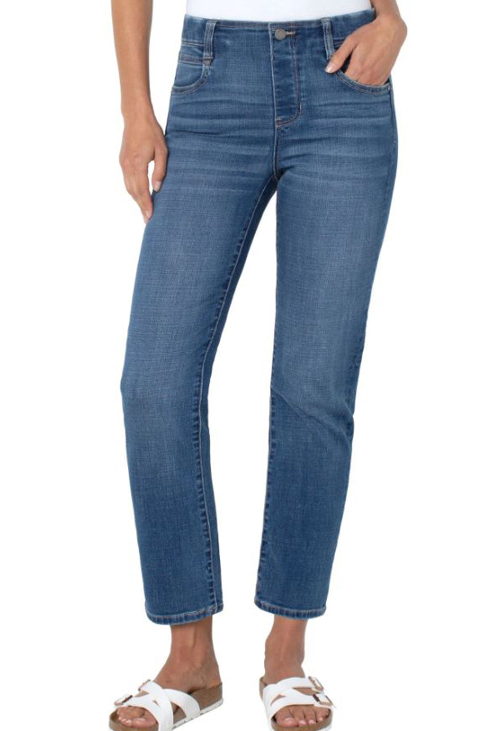 The Gia Glider™ has functioning pockets and allows for zero fuss! Shown here in a slim leg. Gives you just the right amount of room with a sleek and sophisticated look. This is a fabulous fit for those who need a break from a skinny.