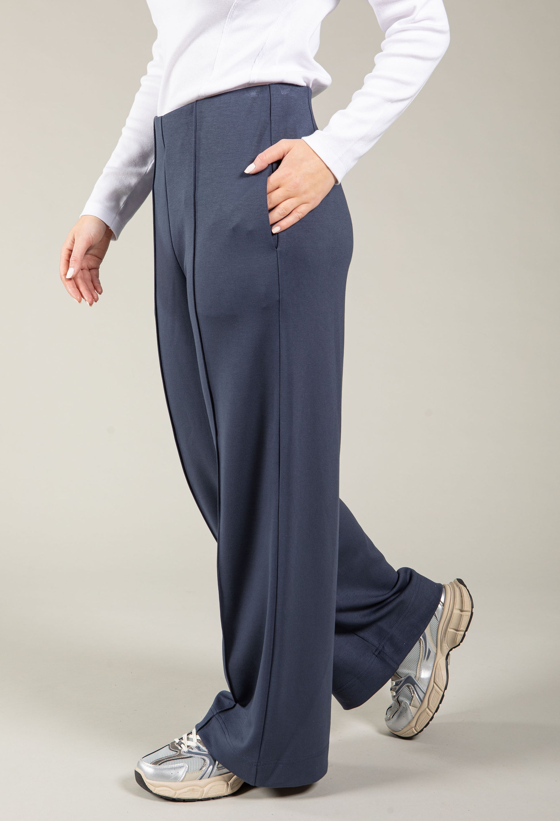 The Ginny Soft Touch Wide Leg Trousers combine a relaxed silhouette with a refined, modern feel. Crafted from a luxurious soft-touch, breathable fabric, these high-rise trousers are designed for all-day comfort. The elasticated waistband ensures an easy, flexible fit, while the wide, straight leg silhouette creates a clean and flattering line. Finished with front seam detailing, Ginny delivers a polished look with understated elegance.