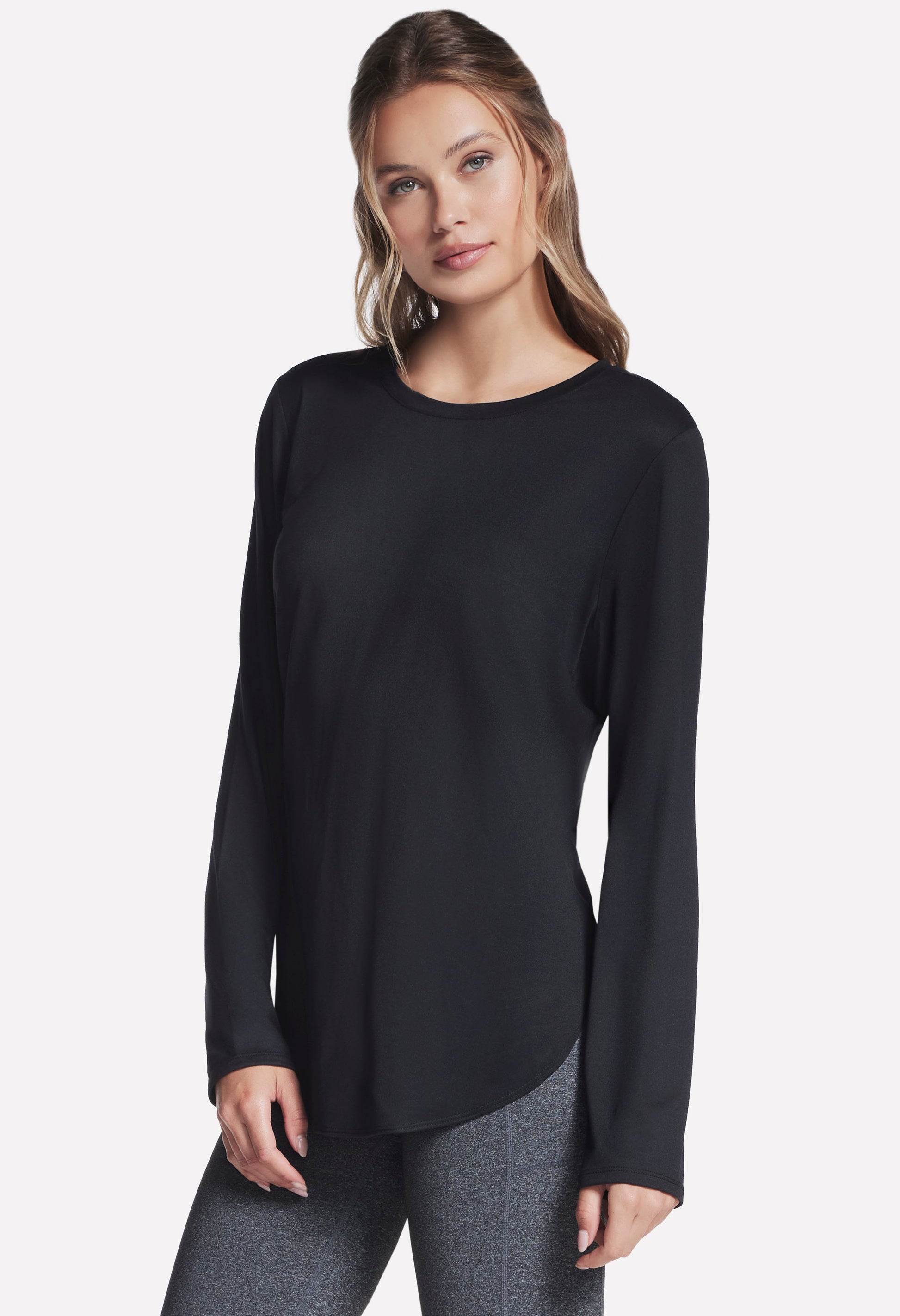 Keep your body warm while staying dry and comfortable wearing Skechers GO DRI® Swift Long Sleeve Tunic Crew. This long sleeve heathered tee is made from our UPF 40 GO DRI® SWIFT fabric and features a crew neck and high-low shirt tail hem.