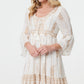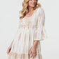 Add a touch of boho elegance to your wardrobe with this chic short dress, featuring a round neckline with tassel ties, flowy 3/4 length sleeves, and a flattering elasticated waist. Subtle gold detailing adds a hint of shimmer, making it perfect for both daytime outings and summer evenings