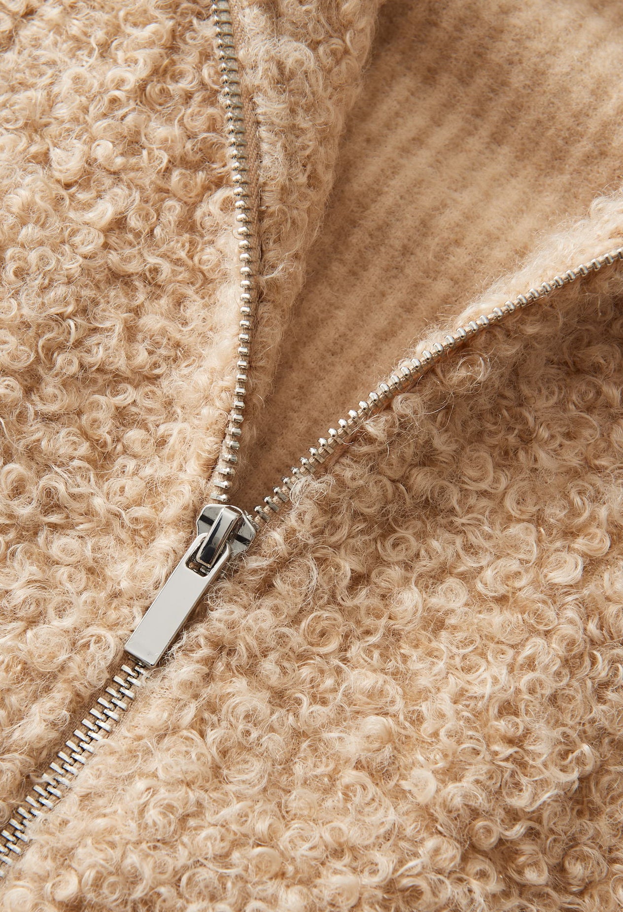 Cosy bouclé yarn with a typical curly surface gives the waistcoat its soft character, while sporty ribbed cuffs round off the look. This casual sweat waistcoat is all about the layering trend when it comes to styling.