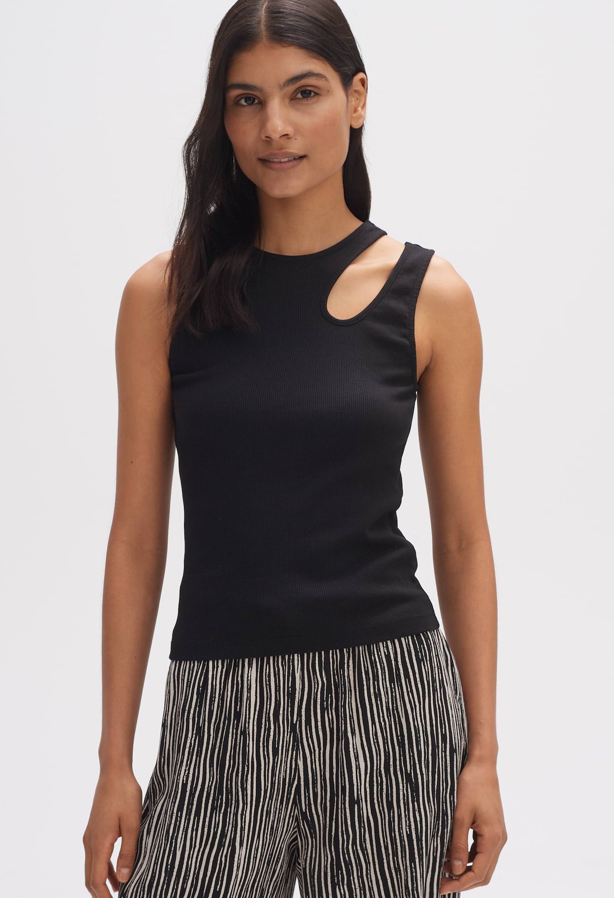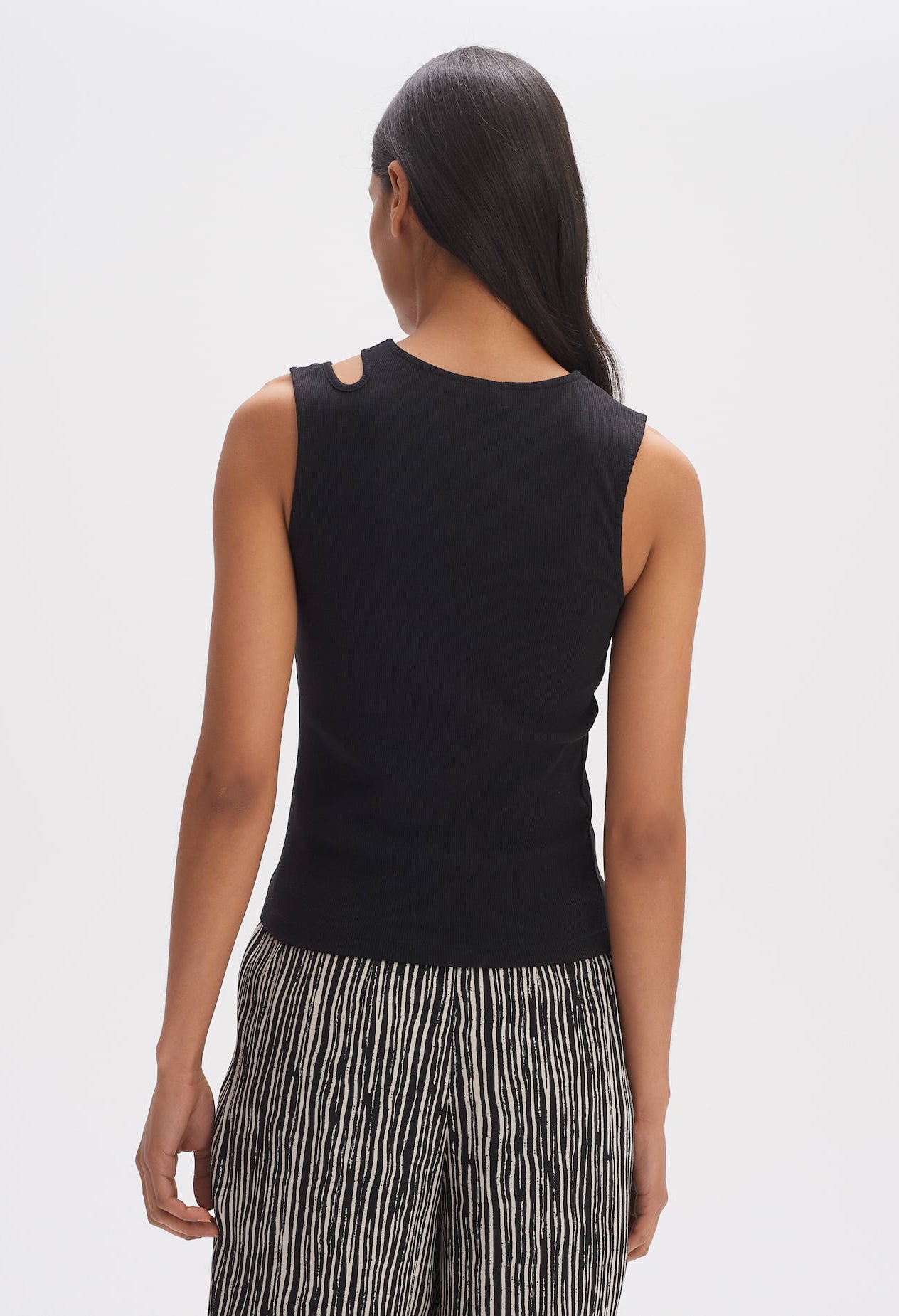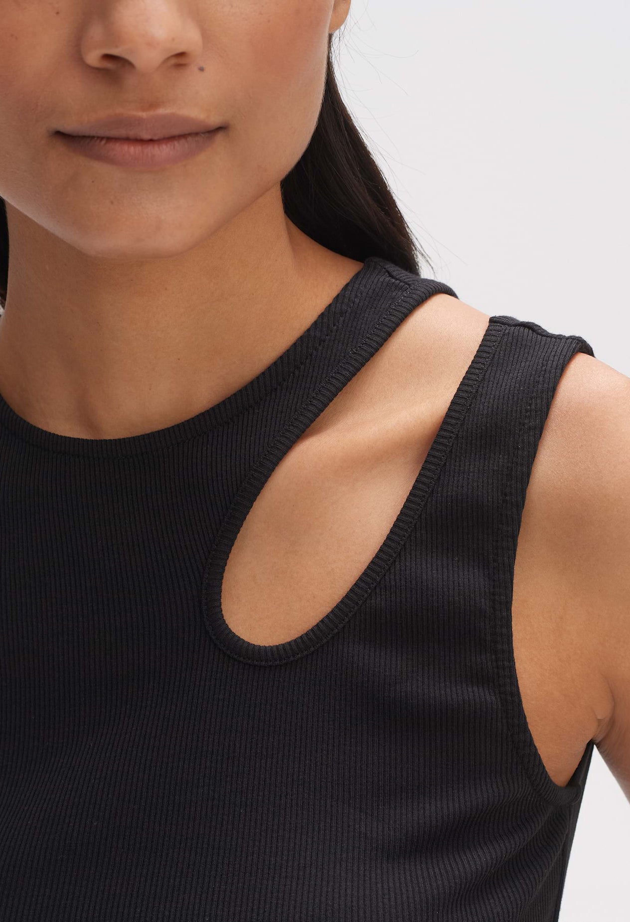 slim fit Straight cut Zero arm Round neckline Back length approx. 56 cm for size 36 Model size 178 cm - wears size 36 BCI Cotton Mix elasticated fabric Cut Out Detail Bra strap is concealed