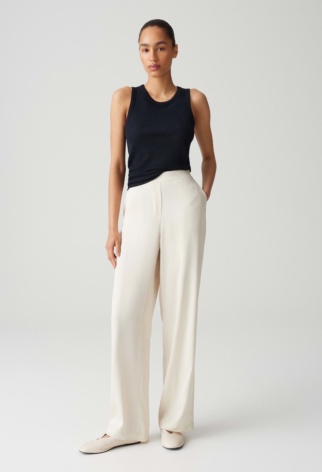 The ribbed tank top features shimmering details and can be styled as a basic for festive occasions.
