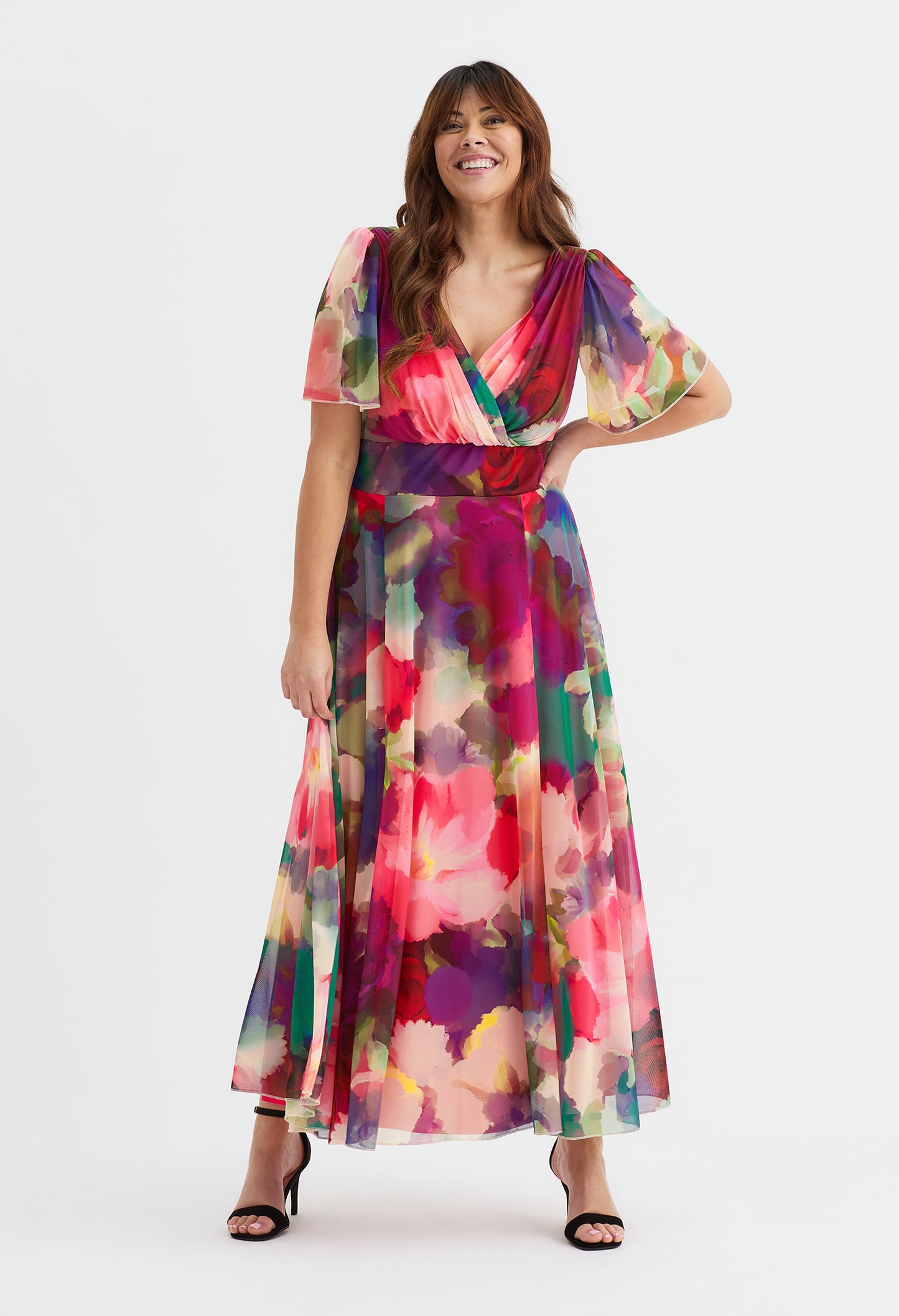 The Isabelle Curve+ Angel Sleeve Maxi Dress is crafted with our POWERFIT® stretch mesh for a soft and flowy feel. It boasts gorgeous floaty angel sleeves and a wrap V neckline, held up by The MagicBand®. The in-built corset enhances your figure for a truly stunning look. This maxi dress is perfect for any occasion and has become a fan favourite. Keep in mind that there are removable shoulder pads that can be adjusted to your liking.