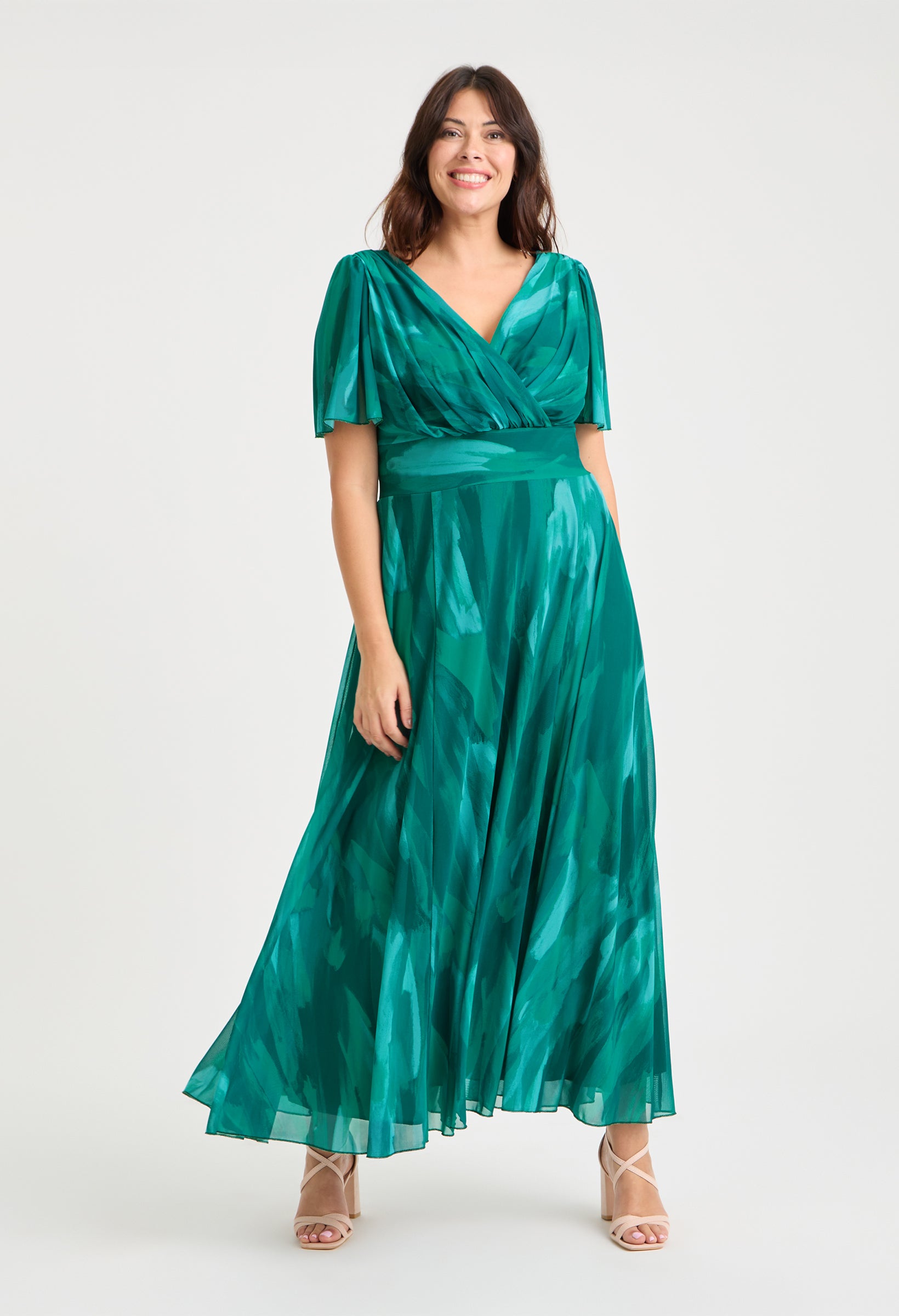 The Isabelle Curve+ Angel Sleeve Maxi Dress is crafted with our POWERFIT® stretch mesh for a soft and flowy feel. It boasts gorgeous floaty angel sleeves and a wrap V neckline, held up by The MagicBand®. The in-built corset enhances your figure for a truly stunning look. This maxi dress is perfect for any occasion and has become a fan favourite. Keep in mind that there are removable shoulder pads that can be adjusted to your liking.