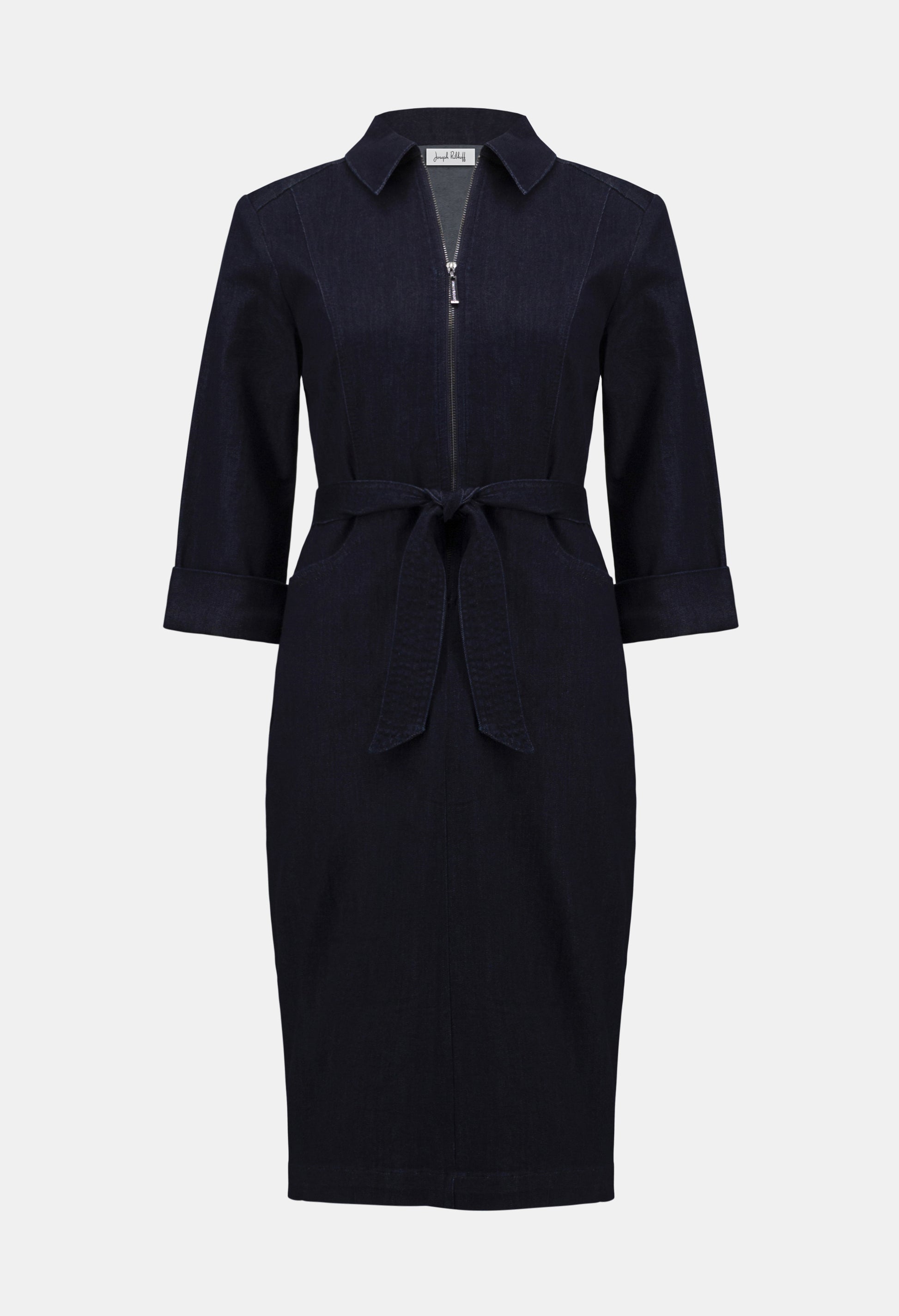 Step out in style with the Joseph Ribkoff shirt dress, a perfect blend of casual and semi-formal elegance. This knee-length dress features a chic collar and a belted waist, accentuating a feminine silhouette. The 3/4 straight sleeves add a touch of minimalism, while the convenient zipper ensures effortless wear. Ideal for any occasion, this dress effortlessly combines comfort and sophistication.