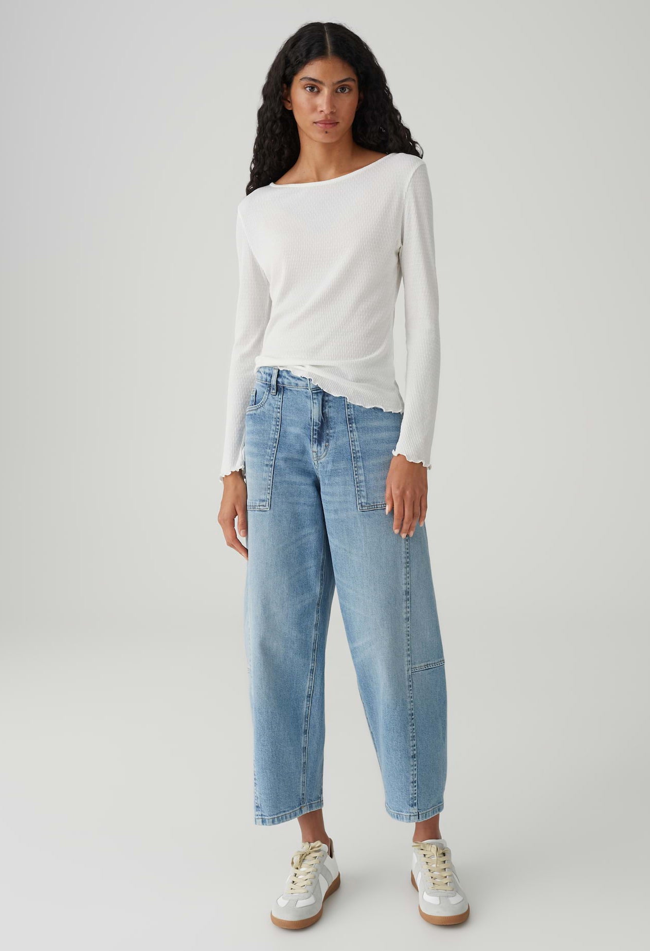 Right on trend and semi-transparent: the lightweight SUZZO long sleeve top with a finely textured surface and decorative cranked edges at the hems brings a lively lightness to any outfit. Whether worn solo or combined as a sophisticated undergarment.