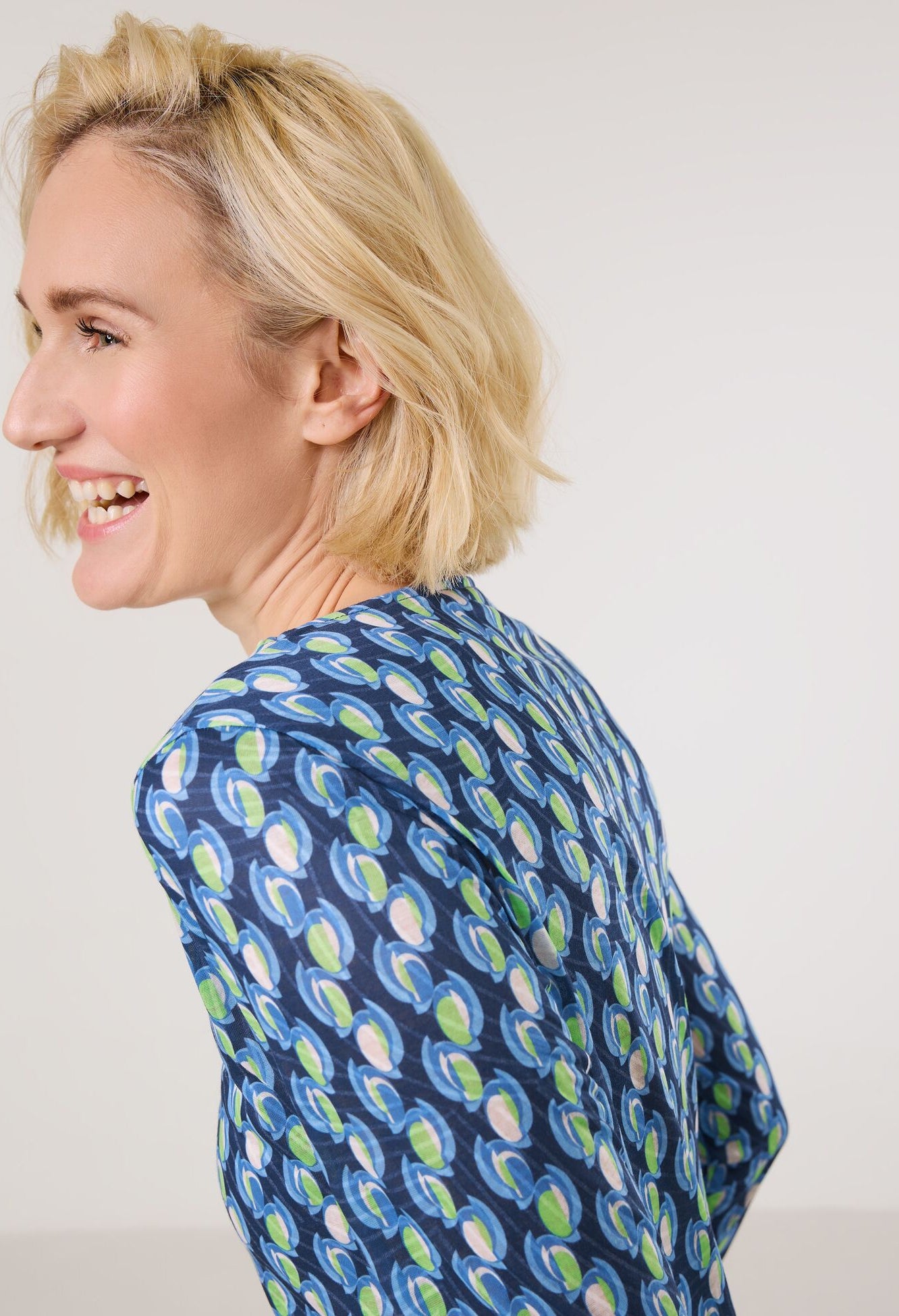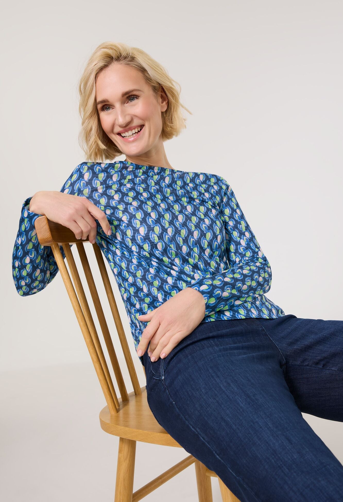 This close-fitting long sleeve top made of high-quality burnout fabric features an abstract all-over print. The lightweight fabric gives it a sophisticated sheer finish and makes it very comfortable to wear.