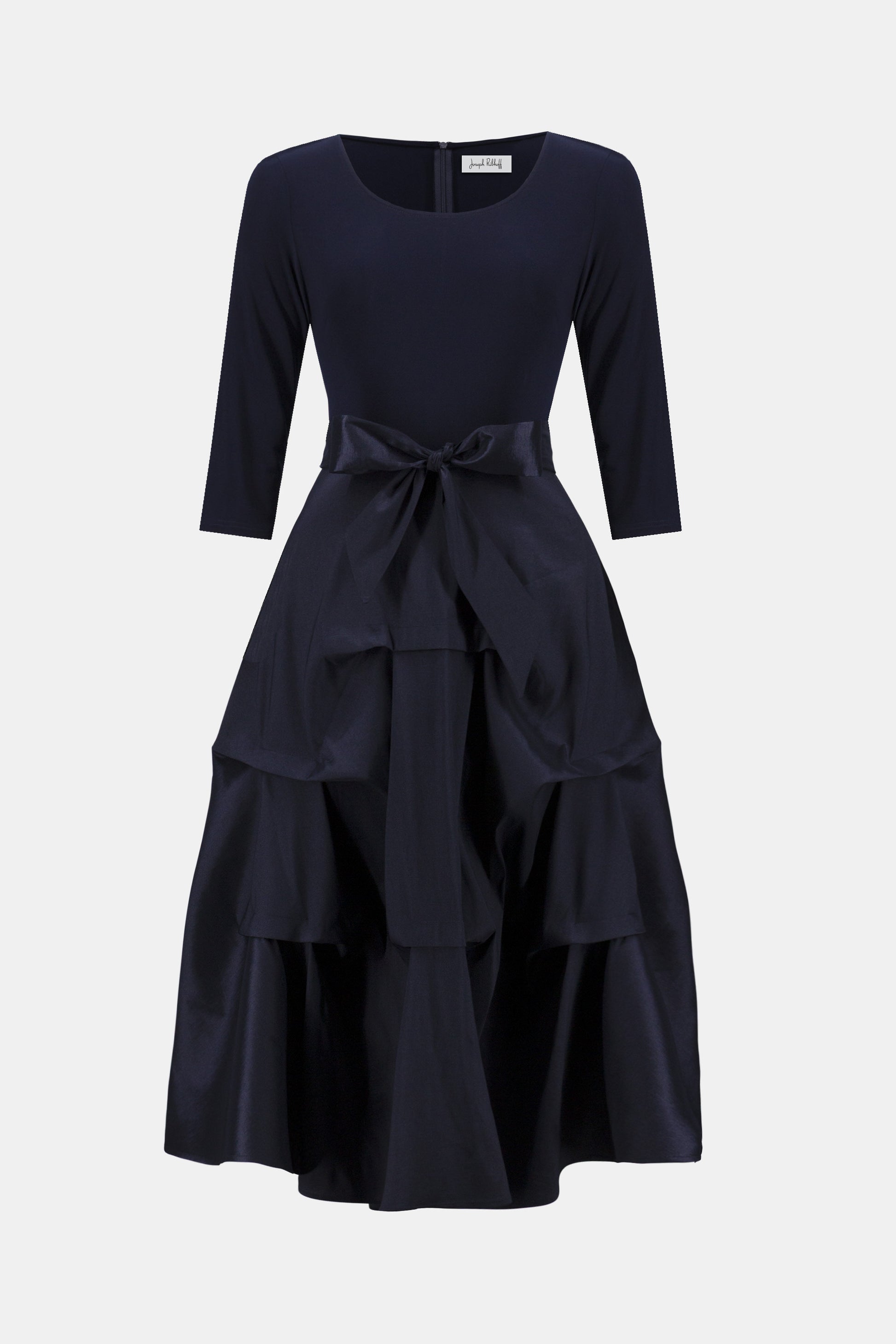 This fit and flare dress features belted and ruffled details, adding a touch of femininity. The round-neck design and 3/4 straight sleeves make it ideal for formal and semi-formal occasions. The plain pattern ensures a timeless look, making it a versatile addition to your wardrobe.