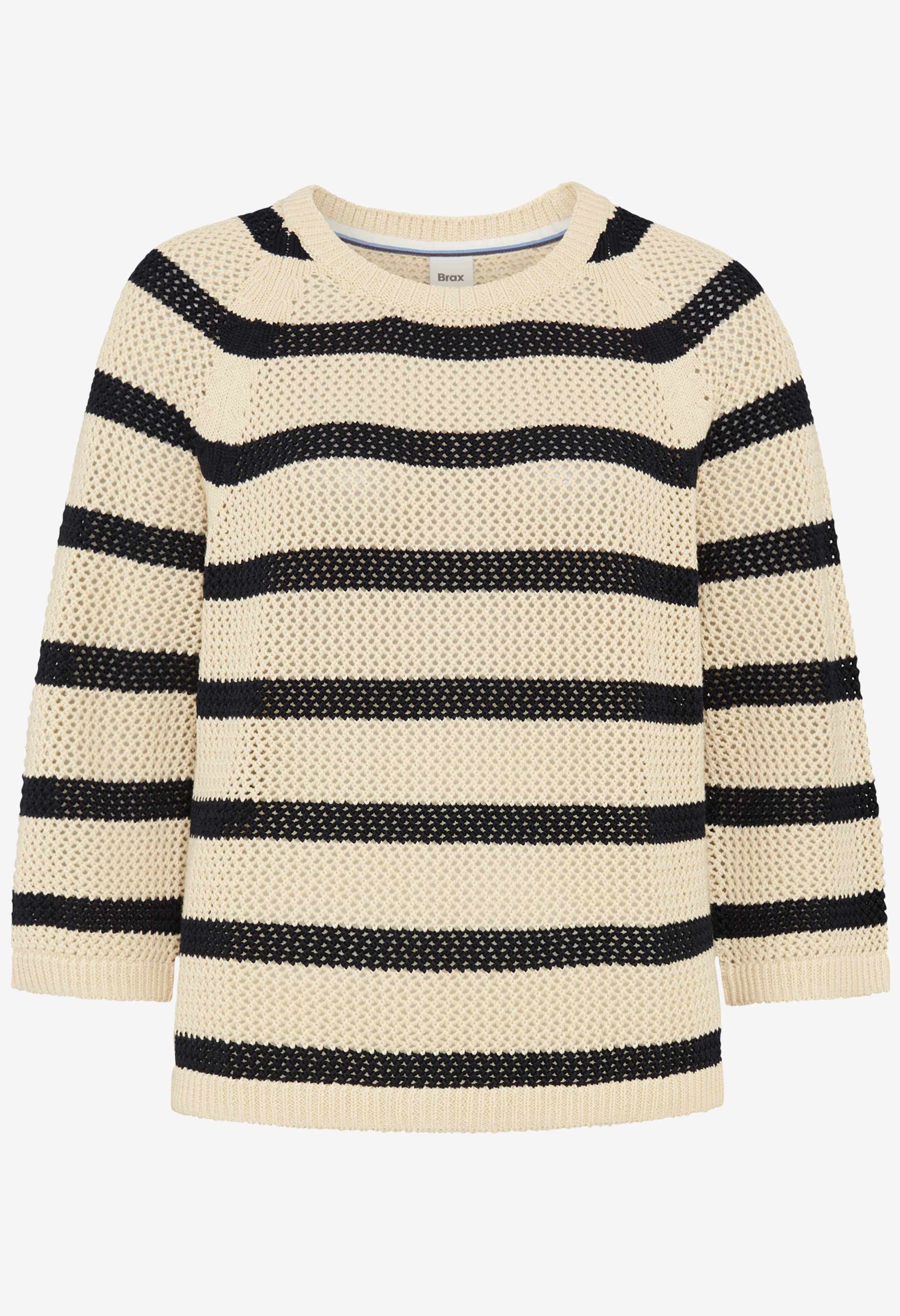 Discover effortless summer style with the Nala Striped Knit Jumper. This cropped women's sweater features eye-catching block stripes and relaxed raglan sleeves with a crew neck. Made from pure cotton with an openwork knit, it's breathable, lightweight, and wonderfully soft against the skin. Perfect for casual days or dressed-up occasions.