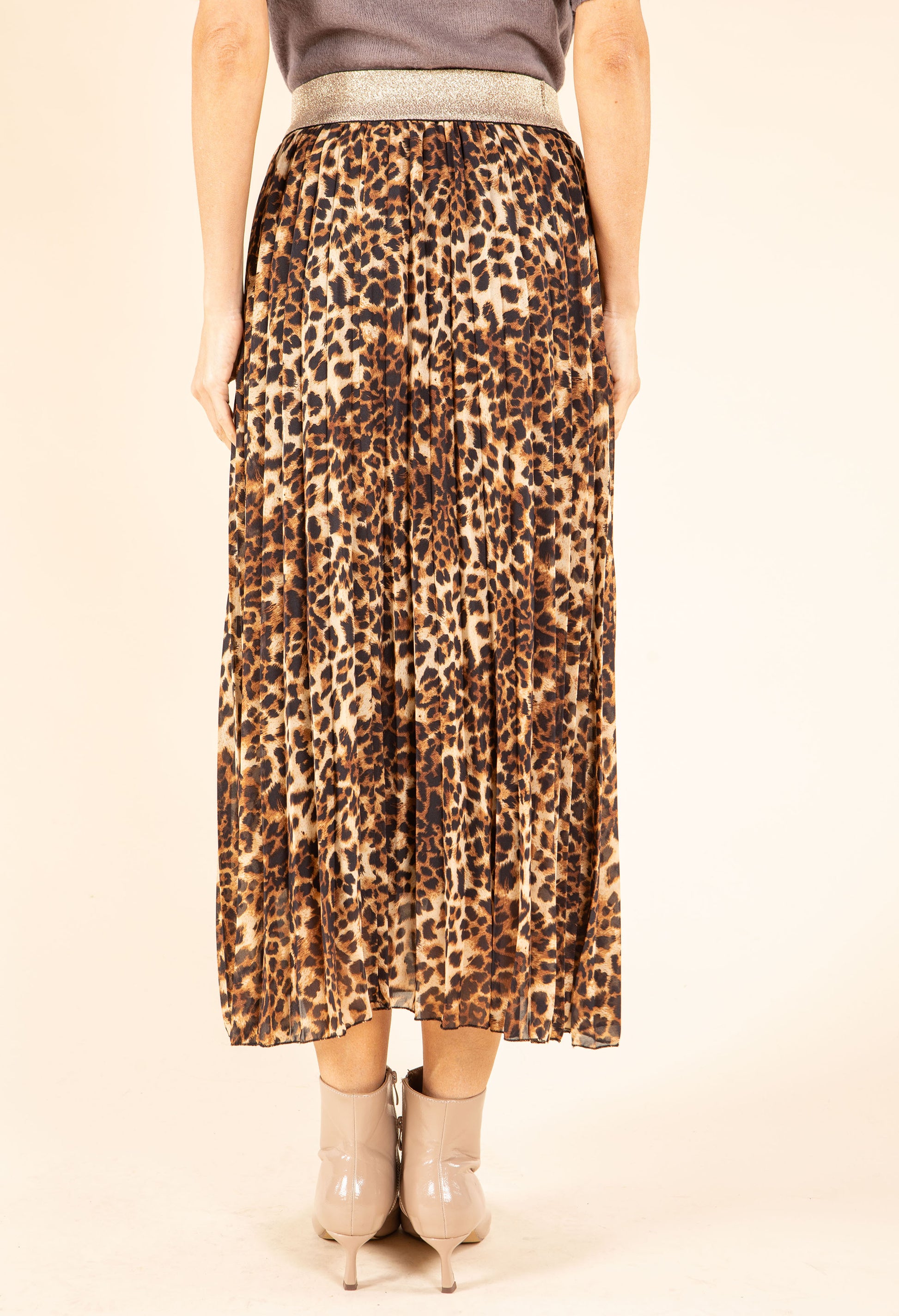 Make a statement with this leopard print pleated skirt, crafted from soft mesh fabric with a lurex elasticated waistband for a touch of shimmer. Fully lined and midi length, it’s the perfect blend of comfort and standout style.