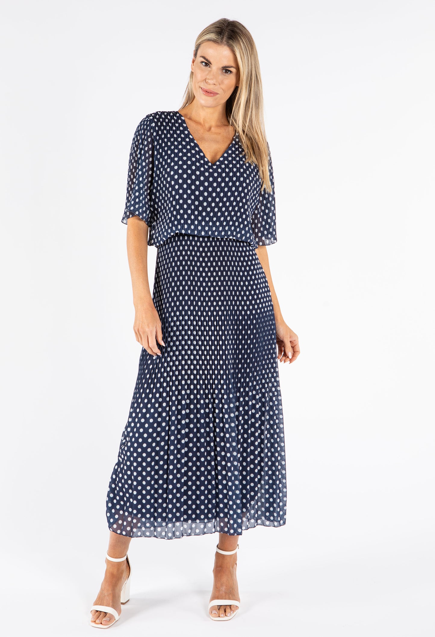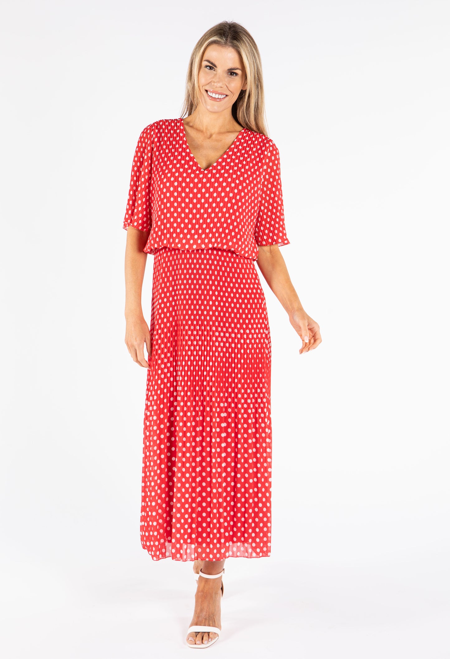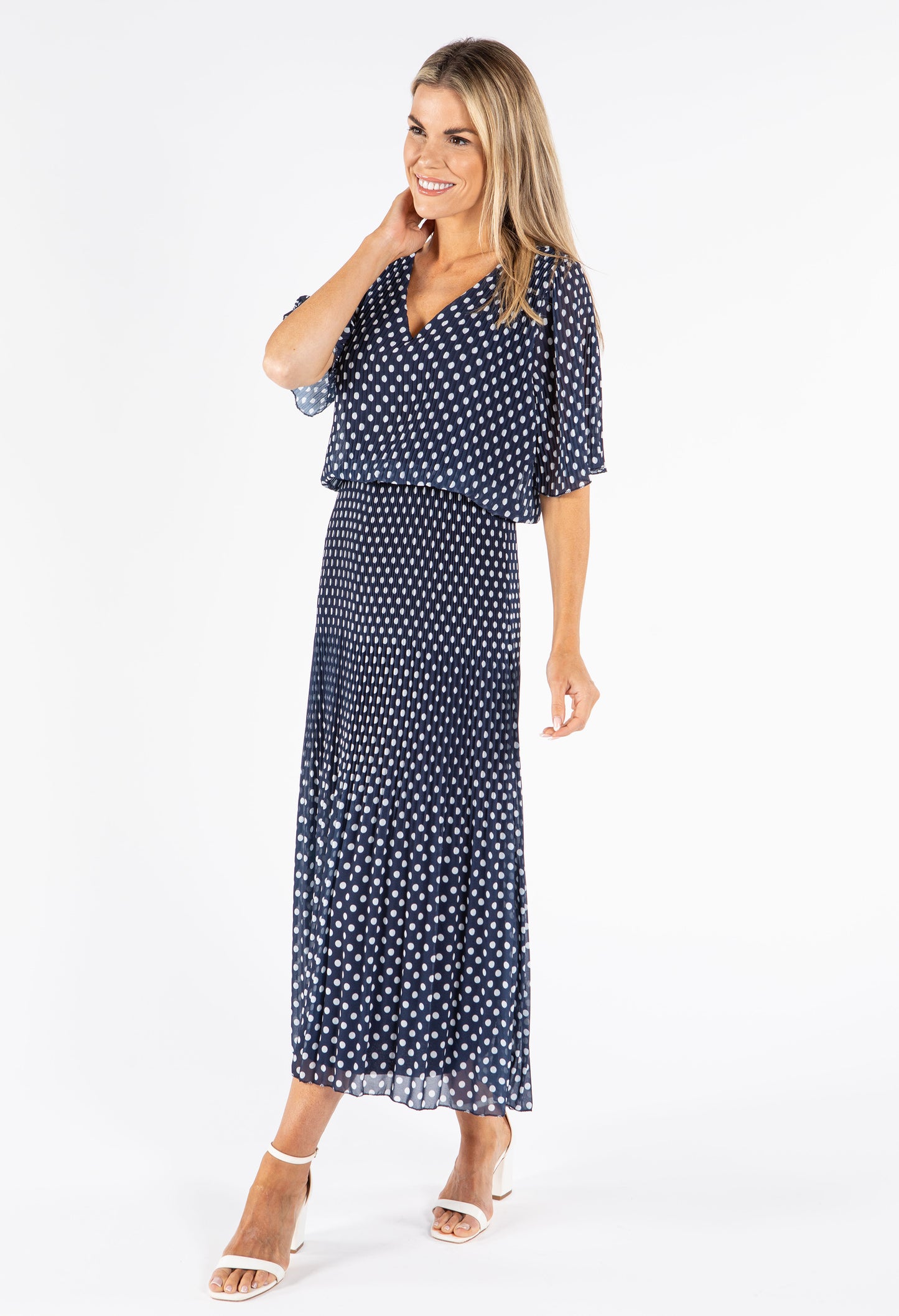 Emporium Plisse Pleat Polka Dot Maxi Dress