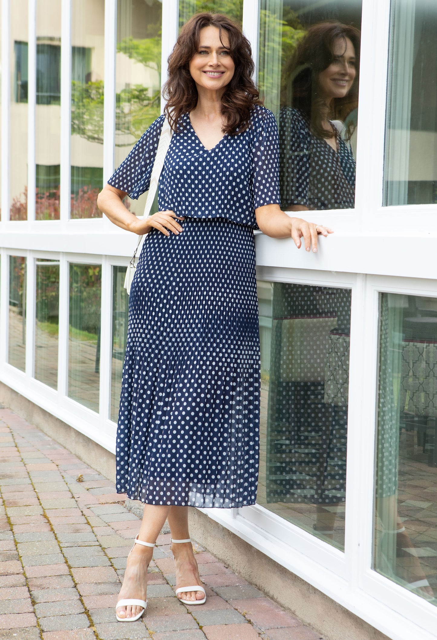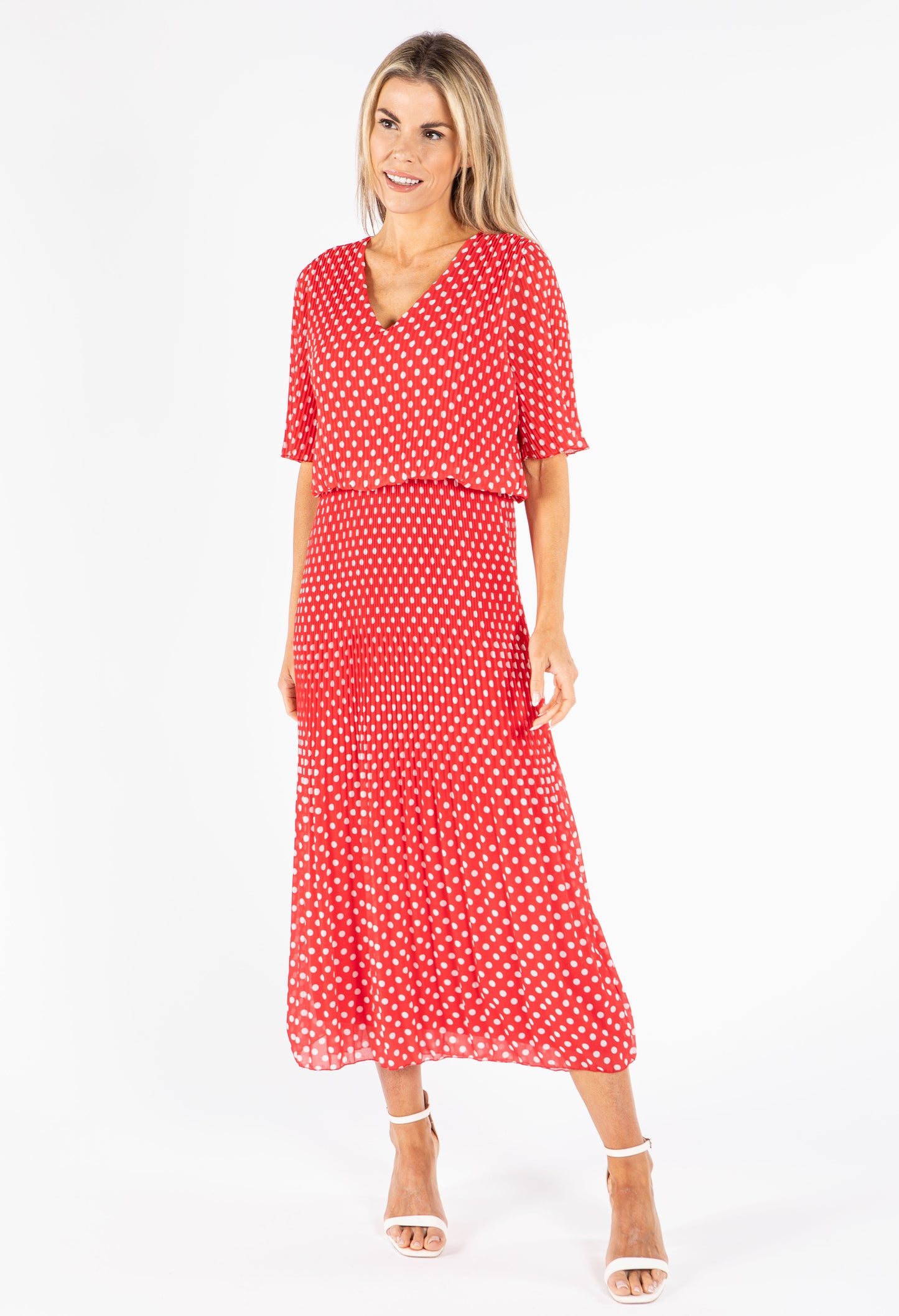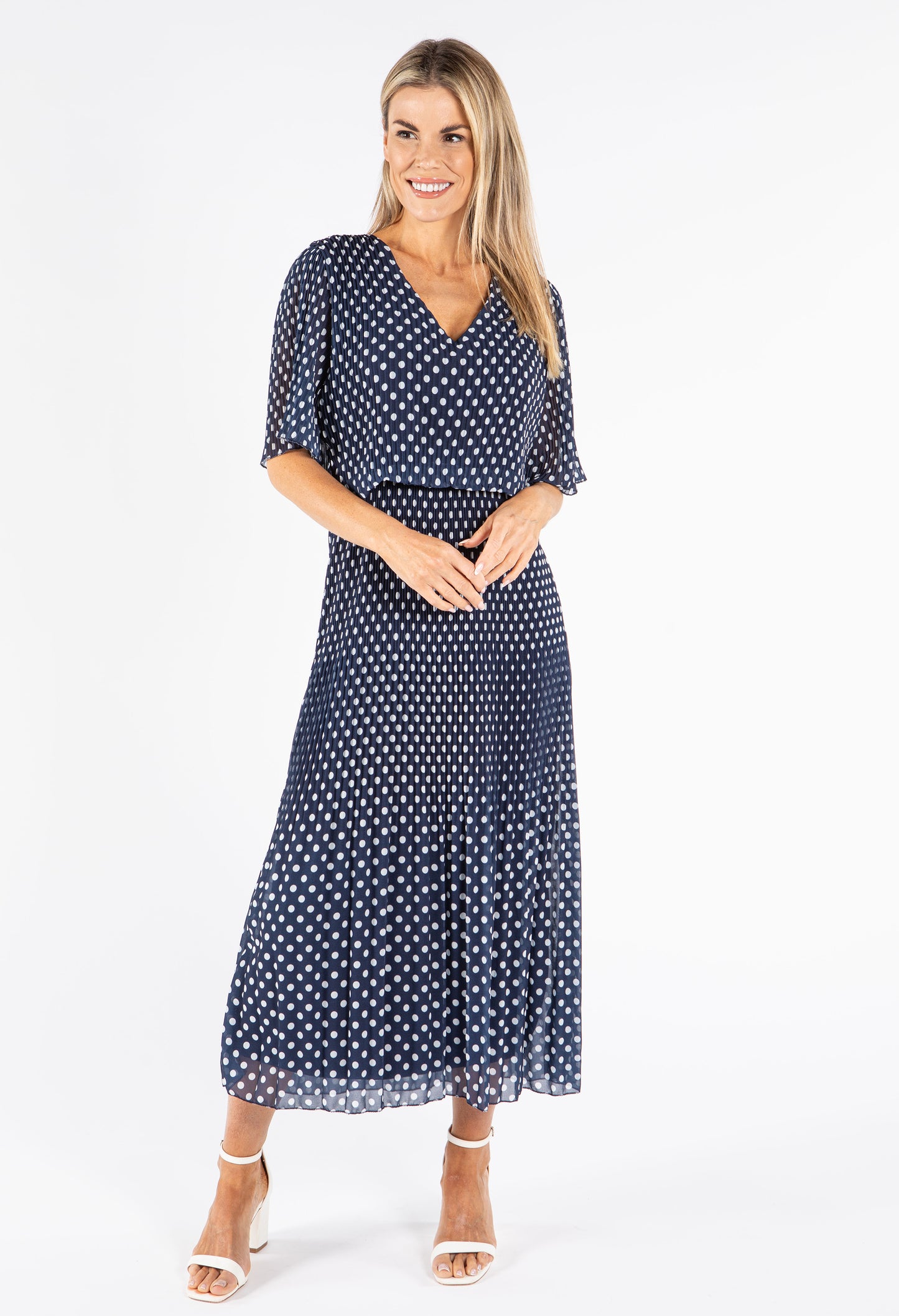 Emporium Plisse Pleat Polka Dot Maxi Dress