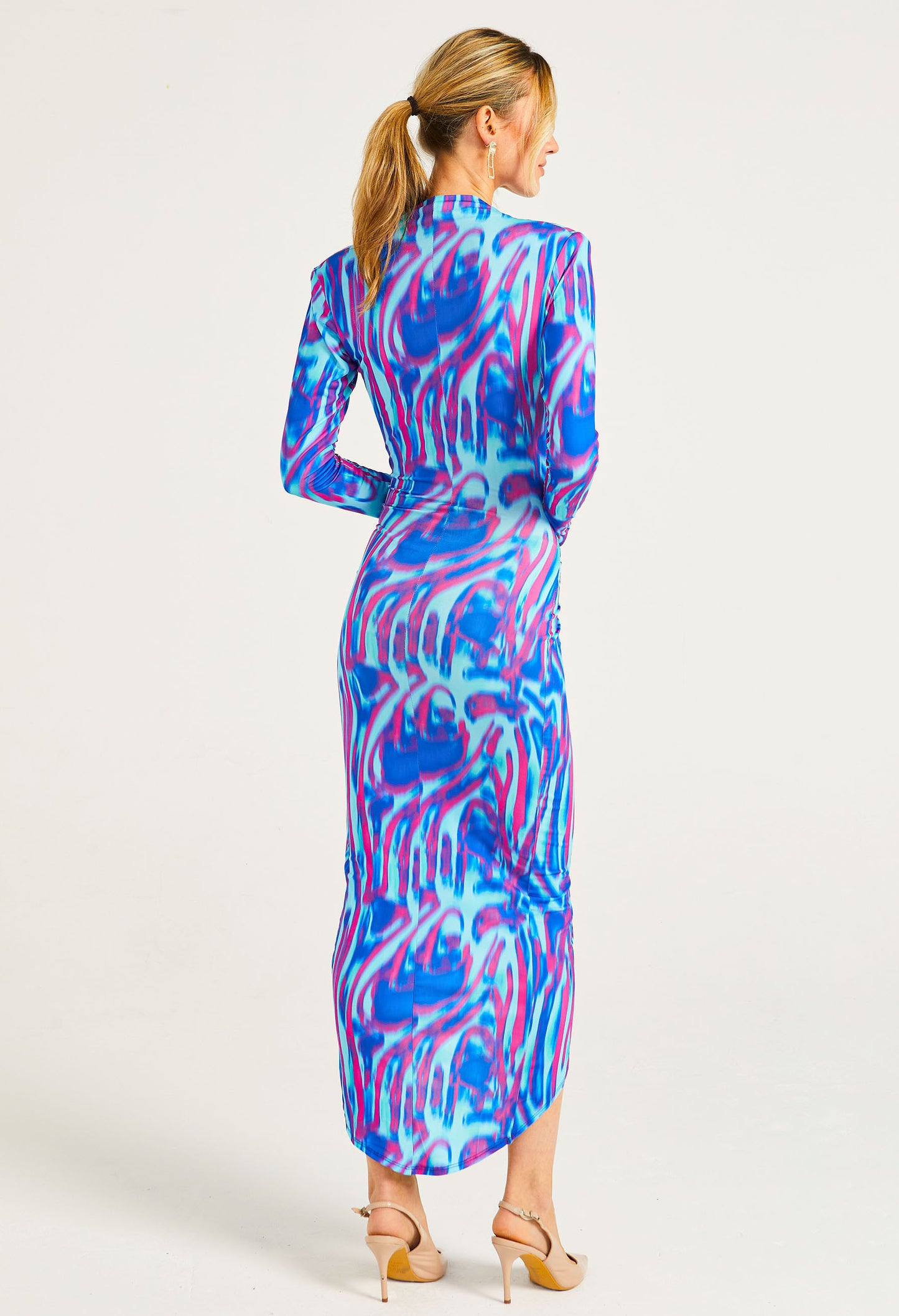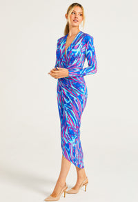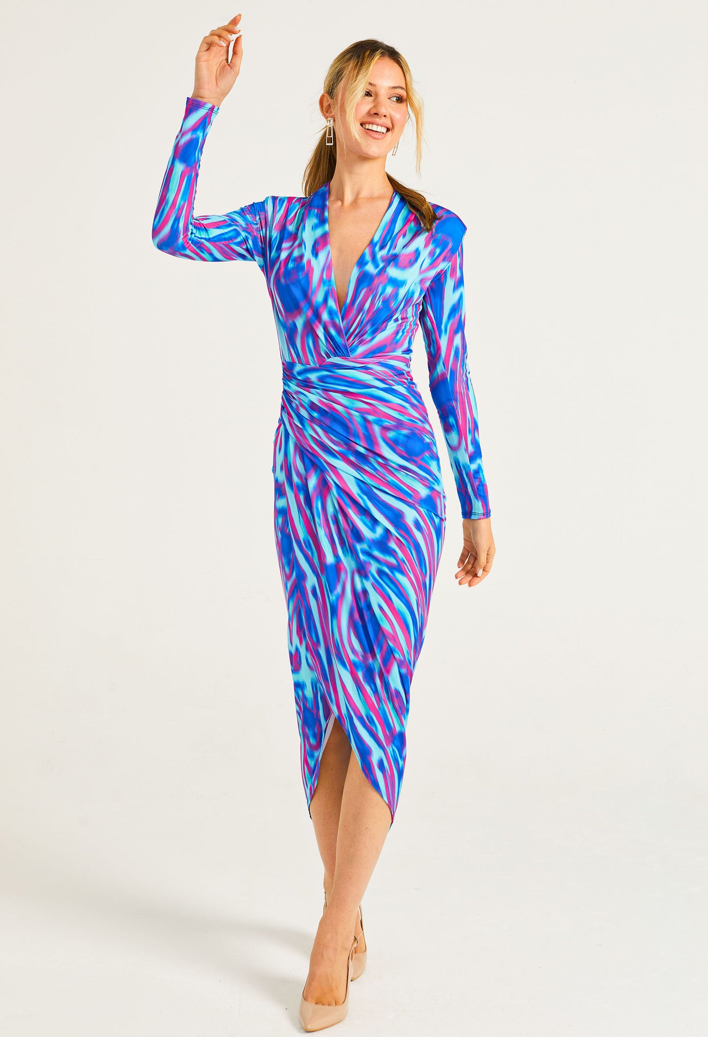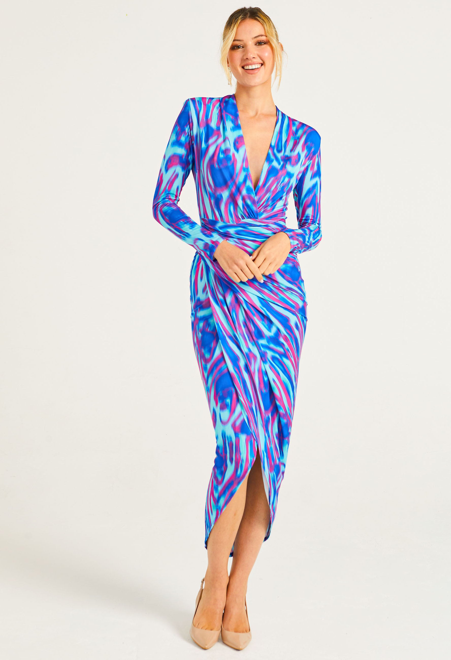 The Trend Room Plunge Neck Faux Wrap Print Midi Dress