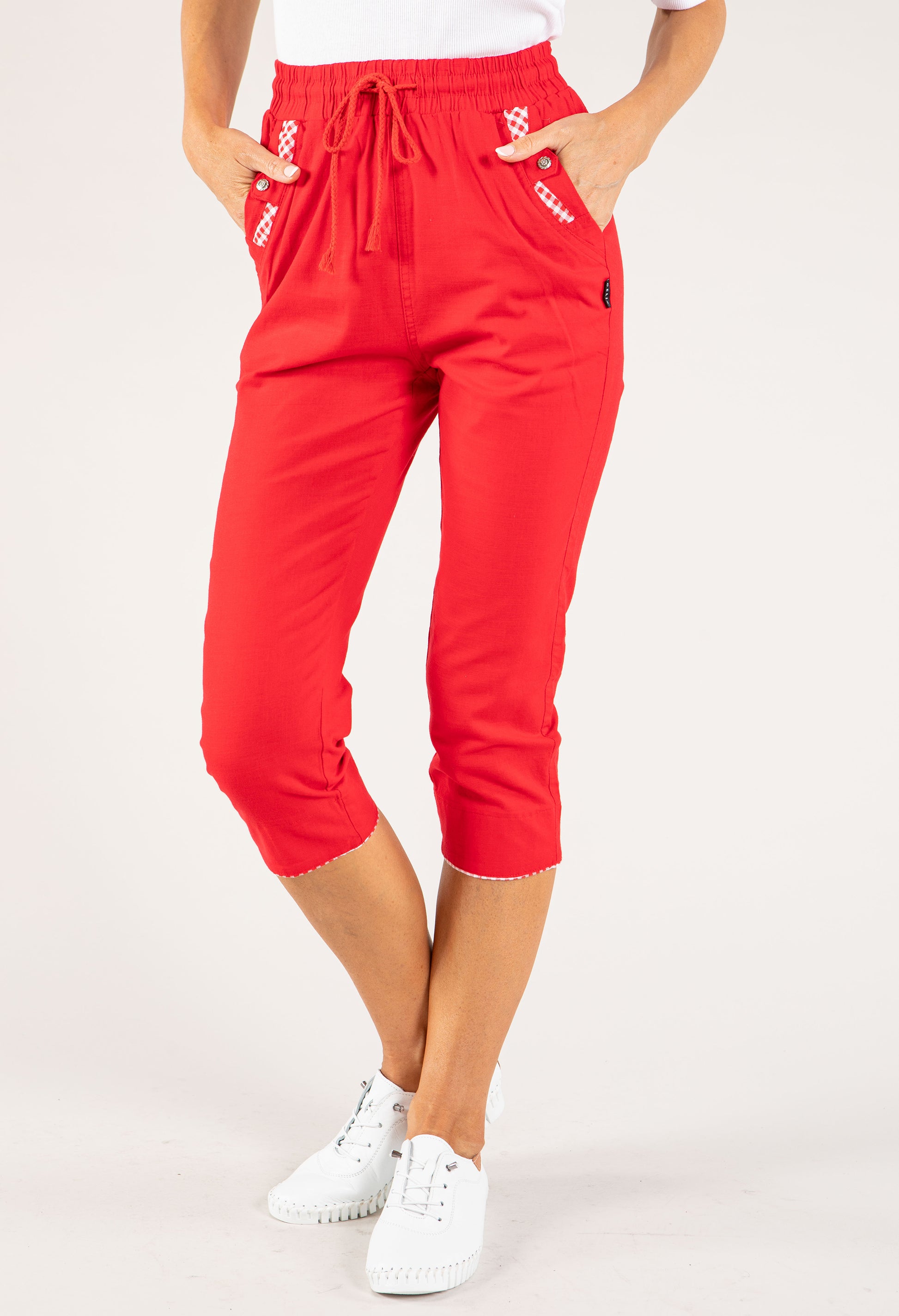 These capris are made from a linen blend and feature an elasticated waistband with a drawstring for a perfect fit. They also include side pockets for practicality and comfort.