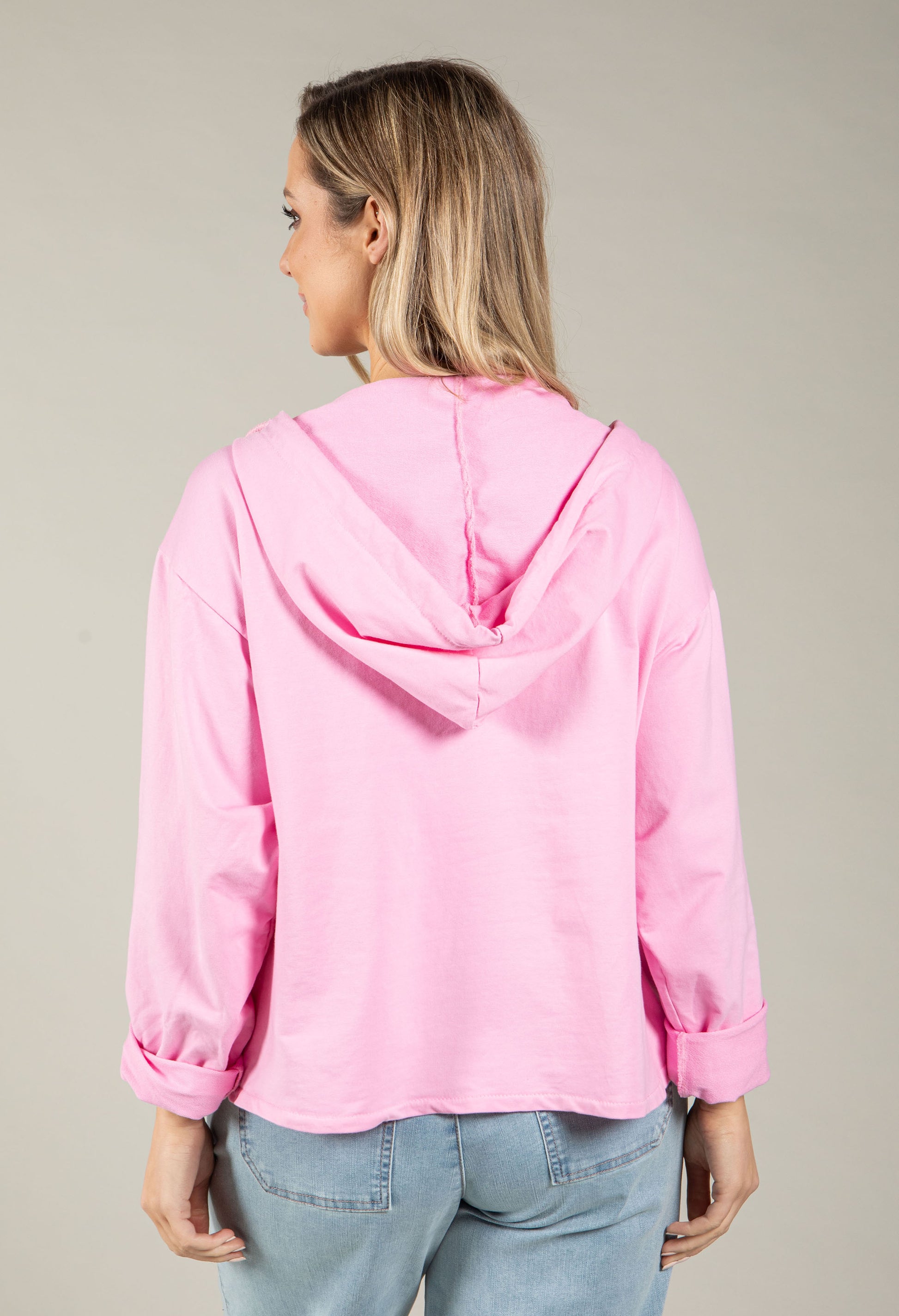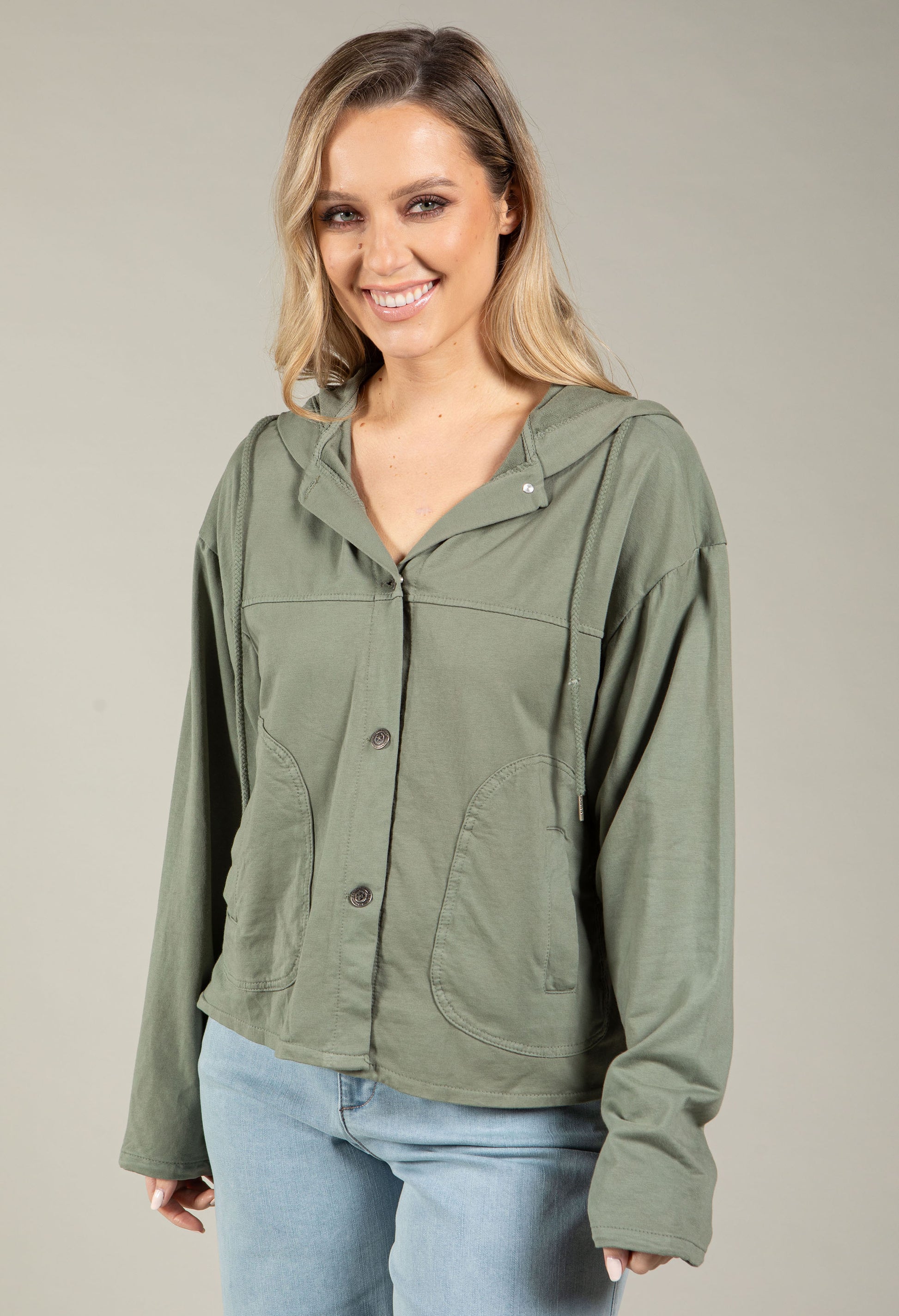 Slip into effortless comfort with this relaxed fit hoodie. Features include a convenient button closure, practical side pockets for your essentials, and an adjustable drawstring hood to customize your fit. Long sleeves provide extra warmth, while the relaxed silhouette ensures you can move freely throughout your day. Perfect for casual outings.