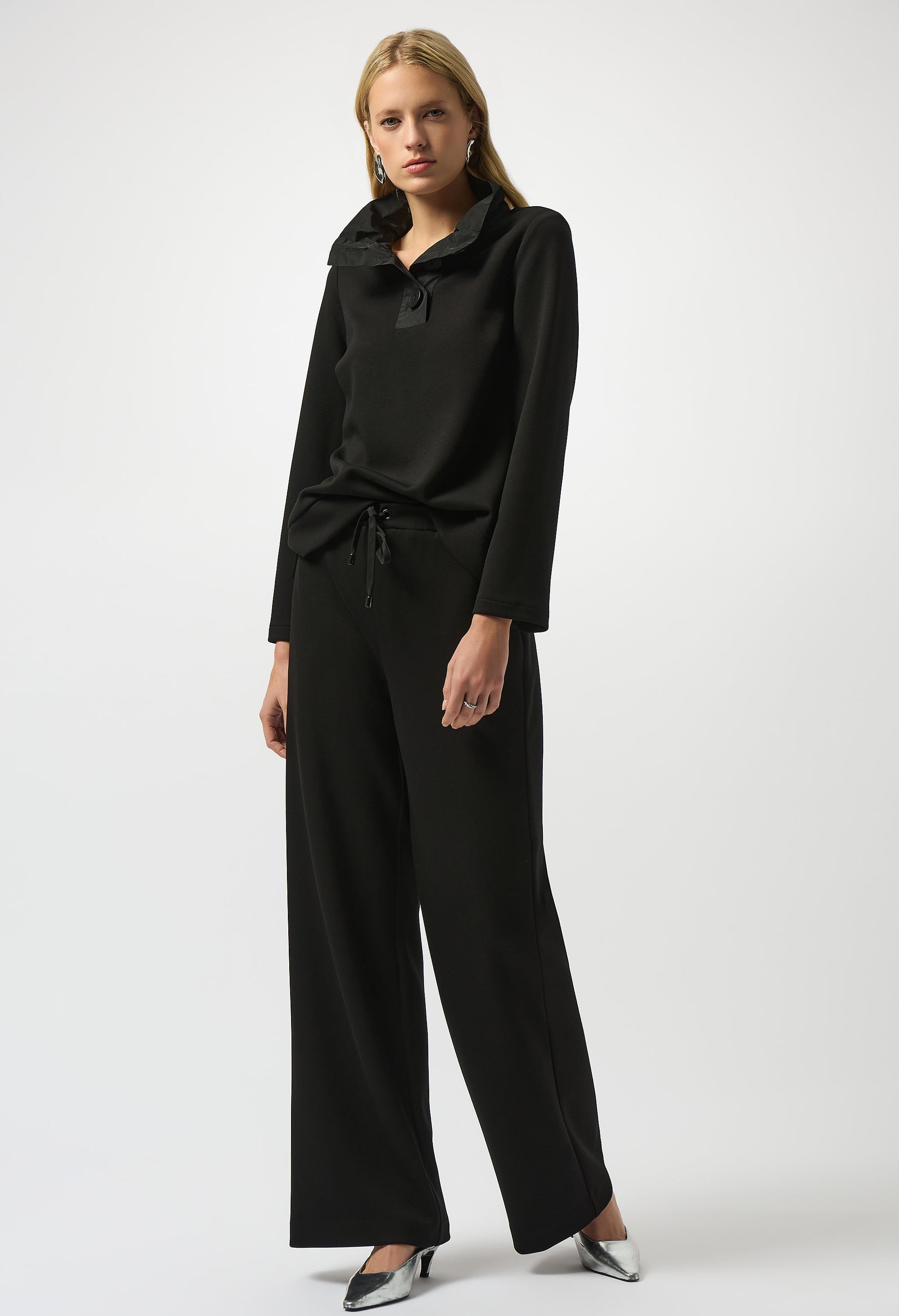 Introducing the Joseph Ribkoff trousers, designed for ultimate versatility and comfort. These fulllength, relaxed-fit bottoms feature a stylish elastic waistband with a practical drawstring, ensuring a perfect fit. Ideal for both casual and office settings, their plain pattern and minimalist style offer a chic, understated look. Elevate your wardrobe with these must-have trousers that effortlessly blend fashion and functionality.