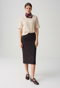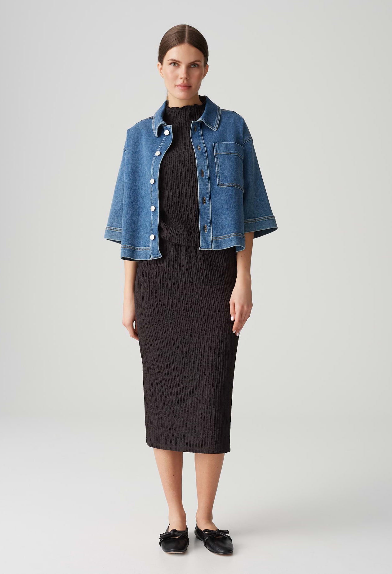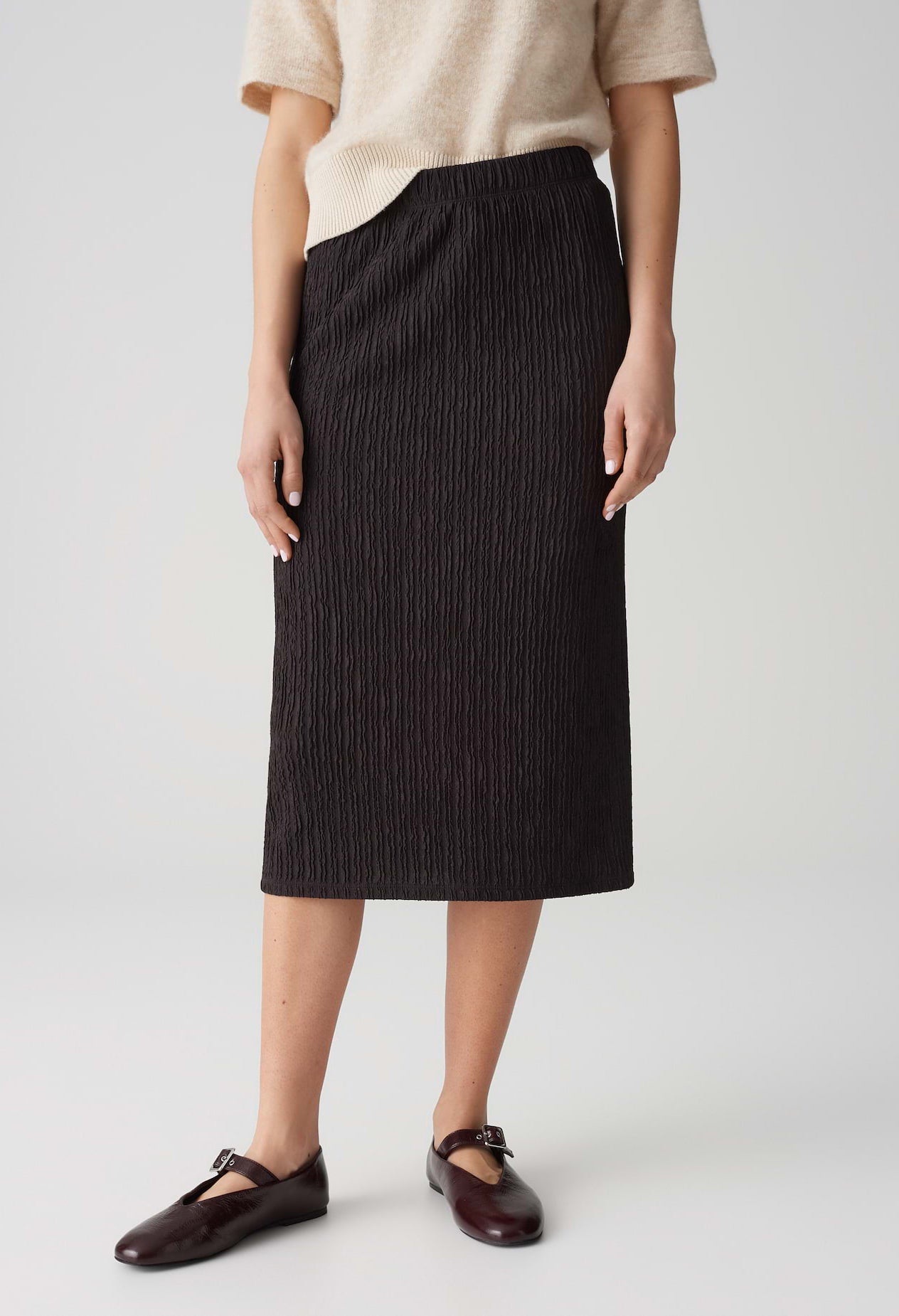 Figure-flattering pencil skirt made of textured jersey with a modern cut and slit at the back. A statement piece for everyday wear or a stylish business look.