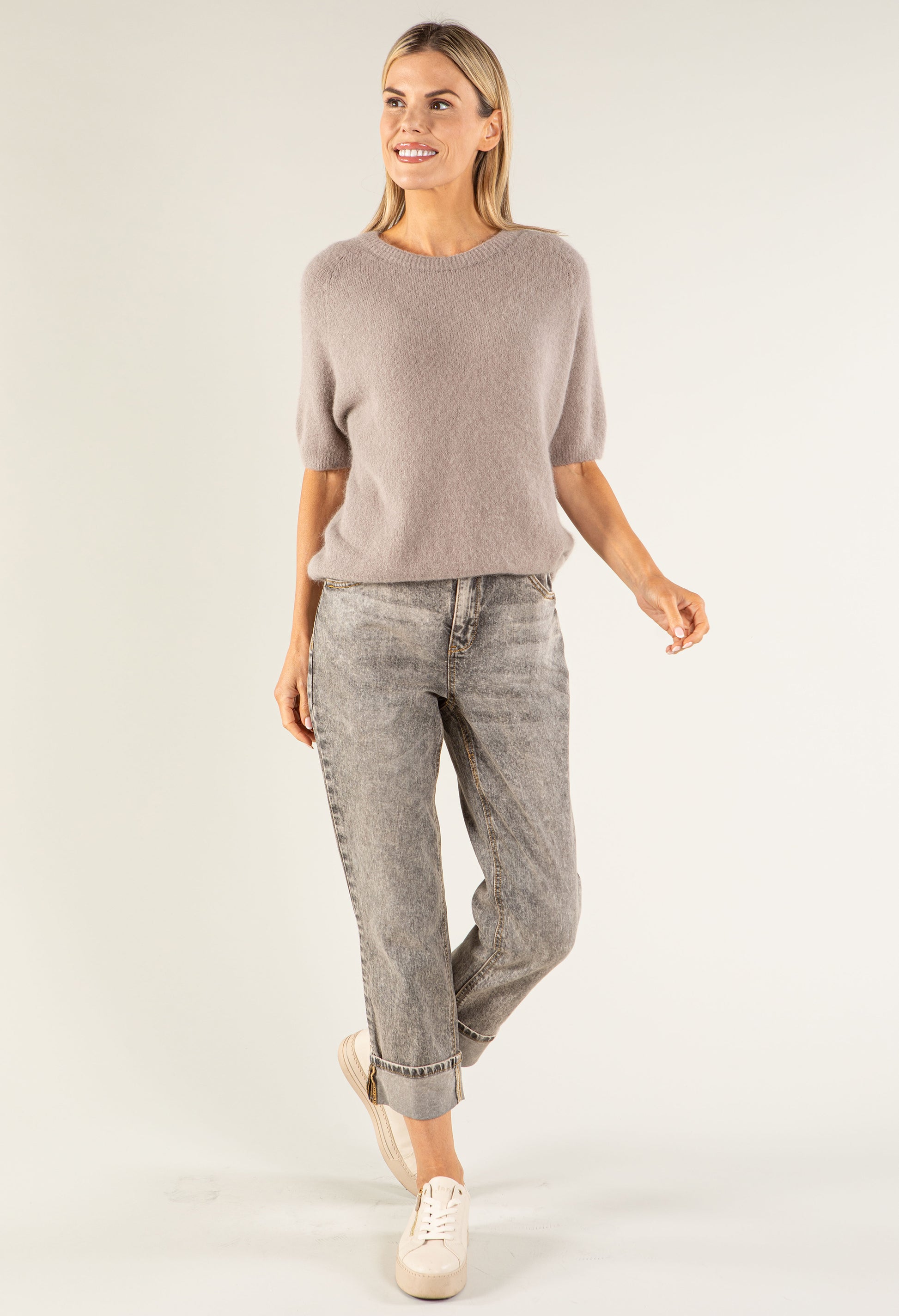 This luxurious baby Alpaca blend knitted pullover features a round neckline and half sleeves, crafted from a soft-touch stretch fabric for ultimate comfort. Designed in a free size, it offers a flattering fit that moves with you. Perfect for effortless style and everyday wear.