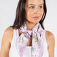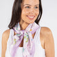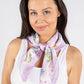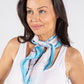 Experience the luxurious softness and stunning butterfly print of our Satin Feel Butterfly Print Scarf, measuring approximately 67 cm x 69 cm with a solid colour border and square shape.