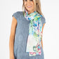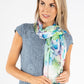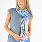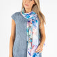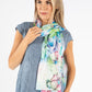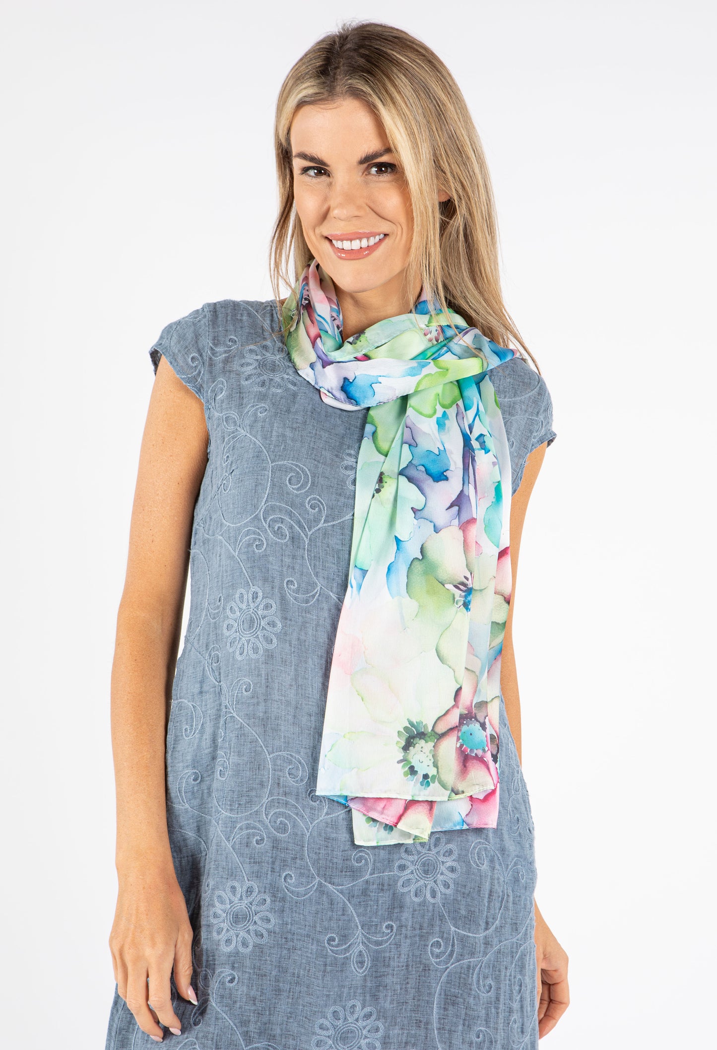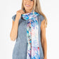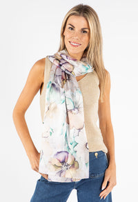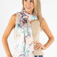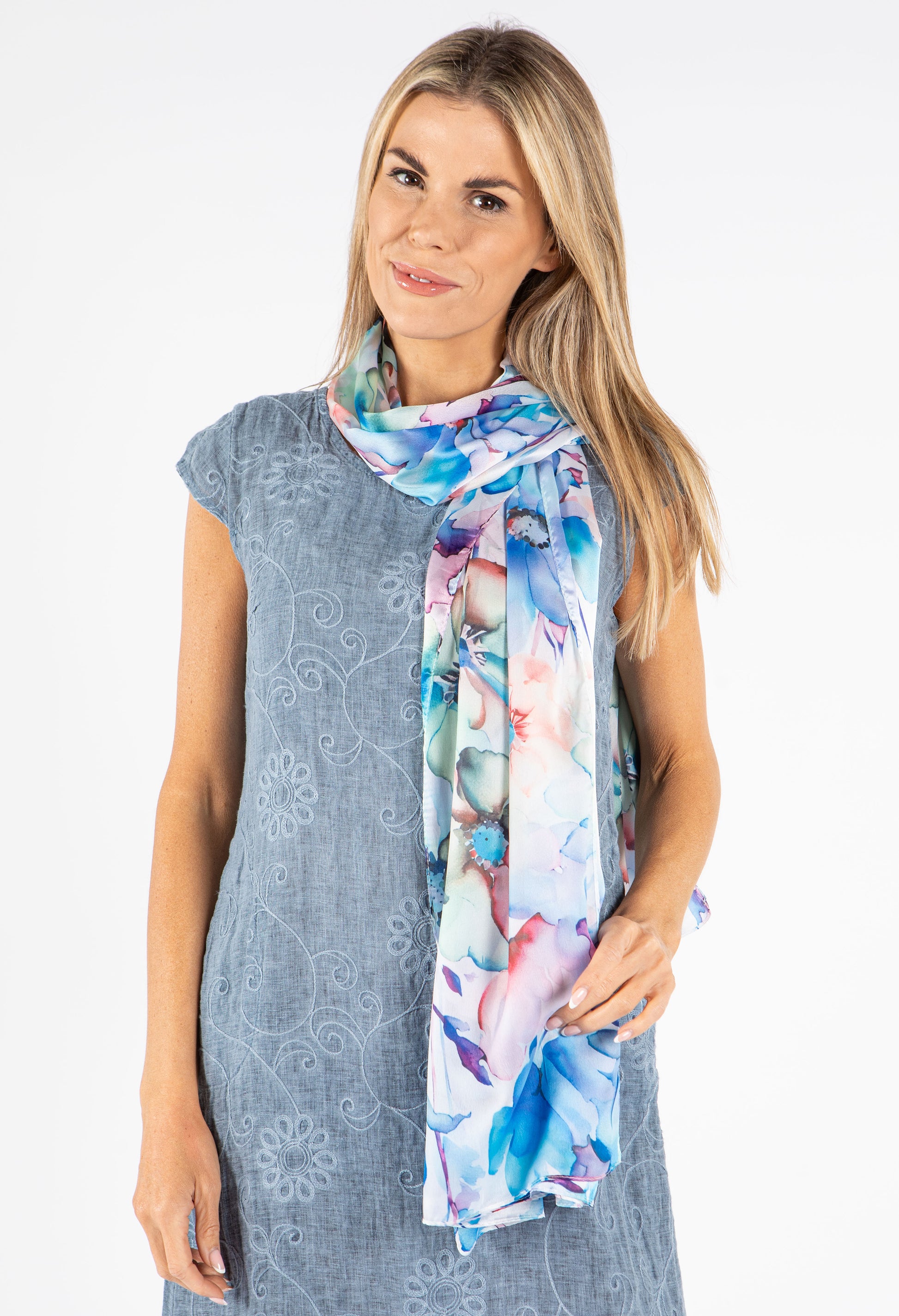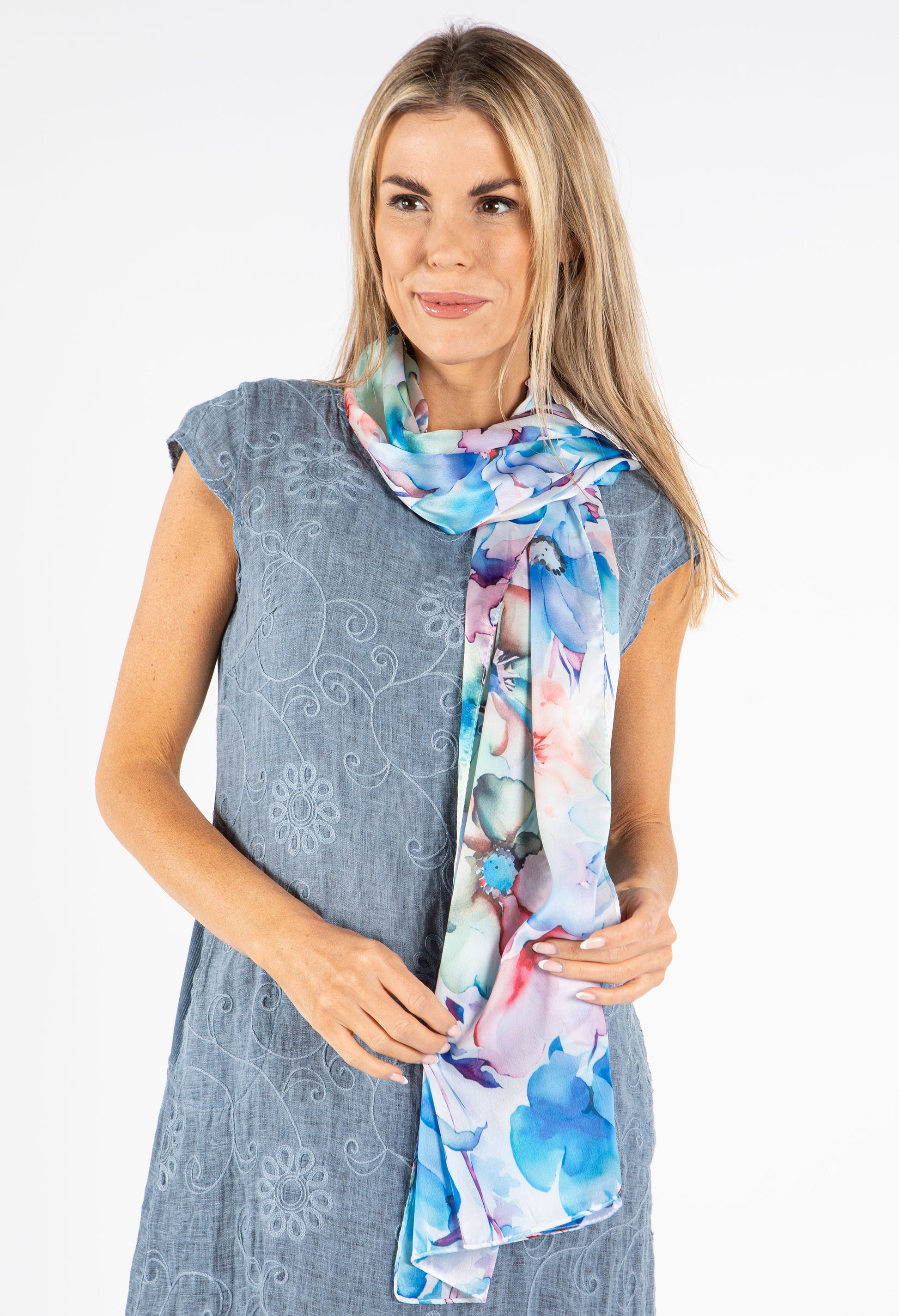 This scarf features a lovely floral print with a satin-like touch that measures approximately 175 cm x 87 cm in a rectangular shape.