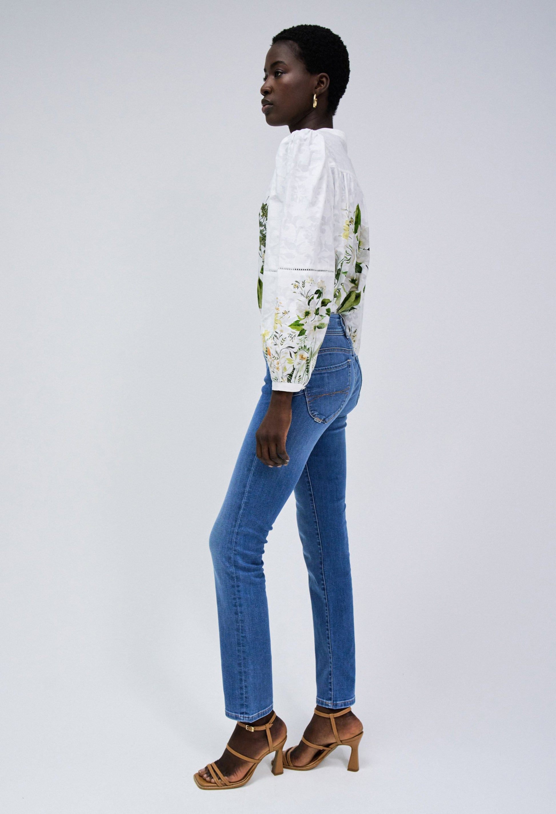 The Secret Push In Slim jeans are the perfect choice for those looking for a casual and modern look with a touch of elegance. With a medium waist and slim leg, these trousers have a push-in effect, which makes this area of the body more elegant, with five functional pockets, a front opening with a zip and two buttons, and belt loops, making them practical for any occasion, from work to leisure moments.