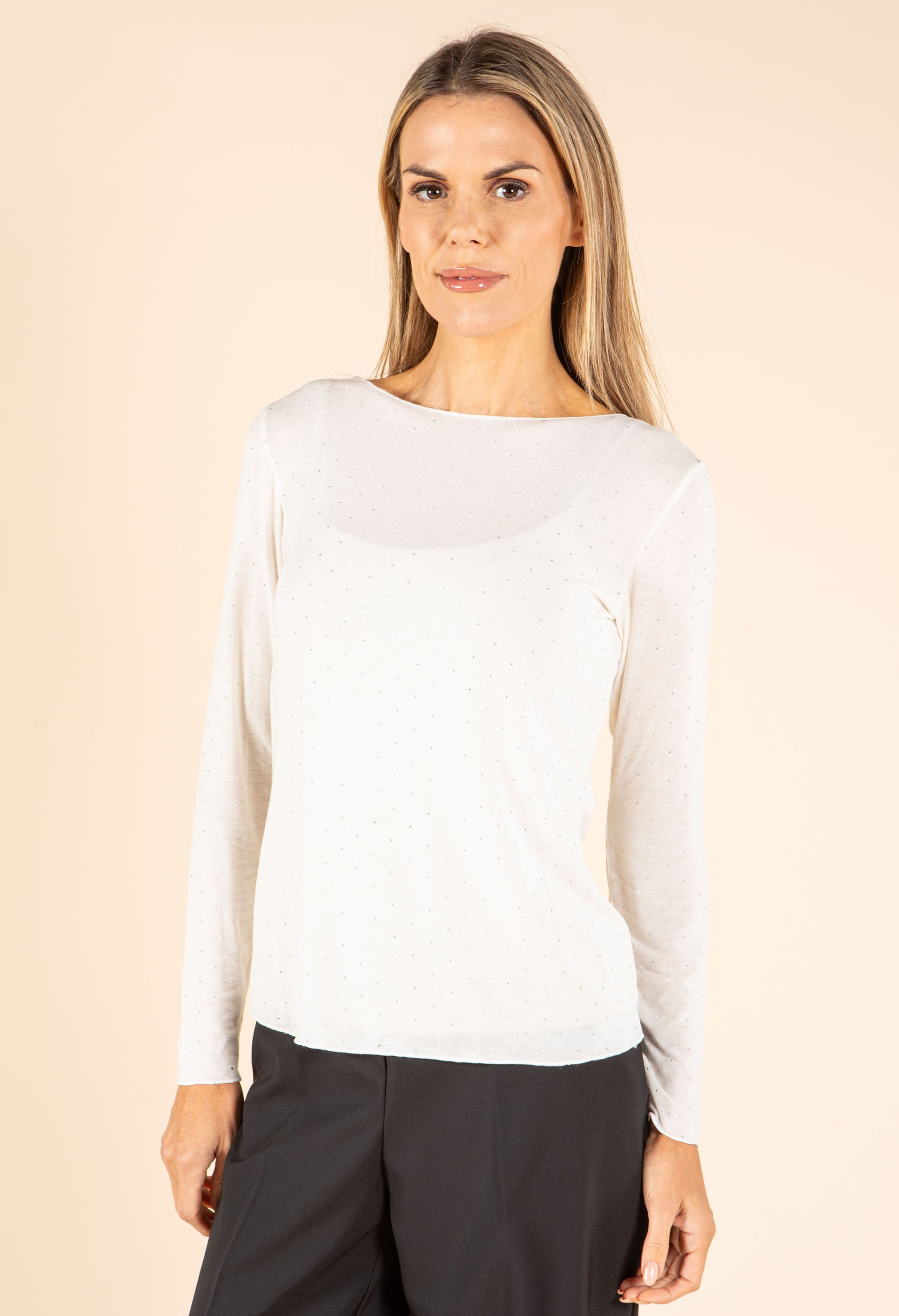 The Trend Room Sheer Cashmere Blend Diamante Top