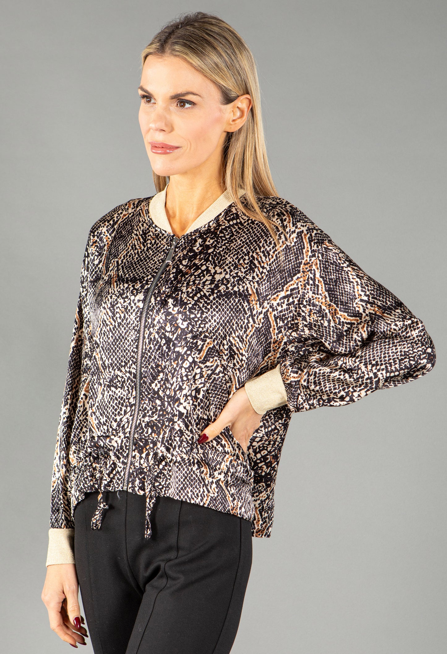 Pamela Scott Snake Print Satin Jacket