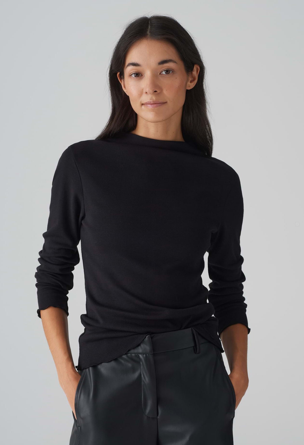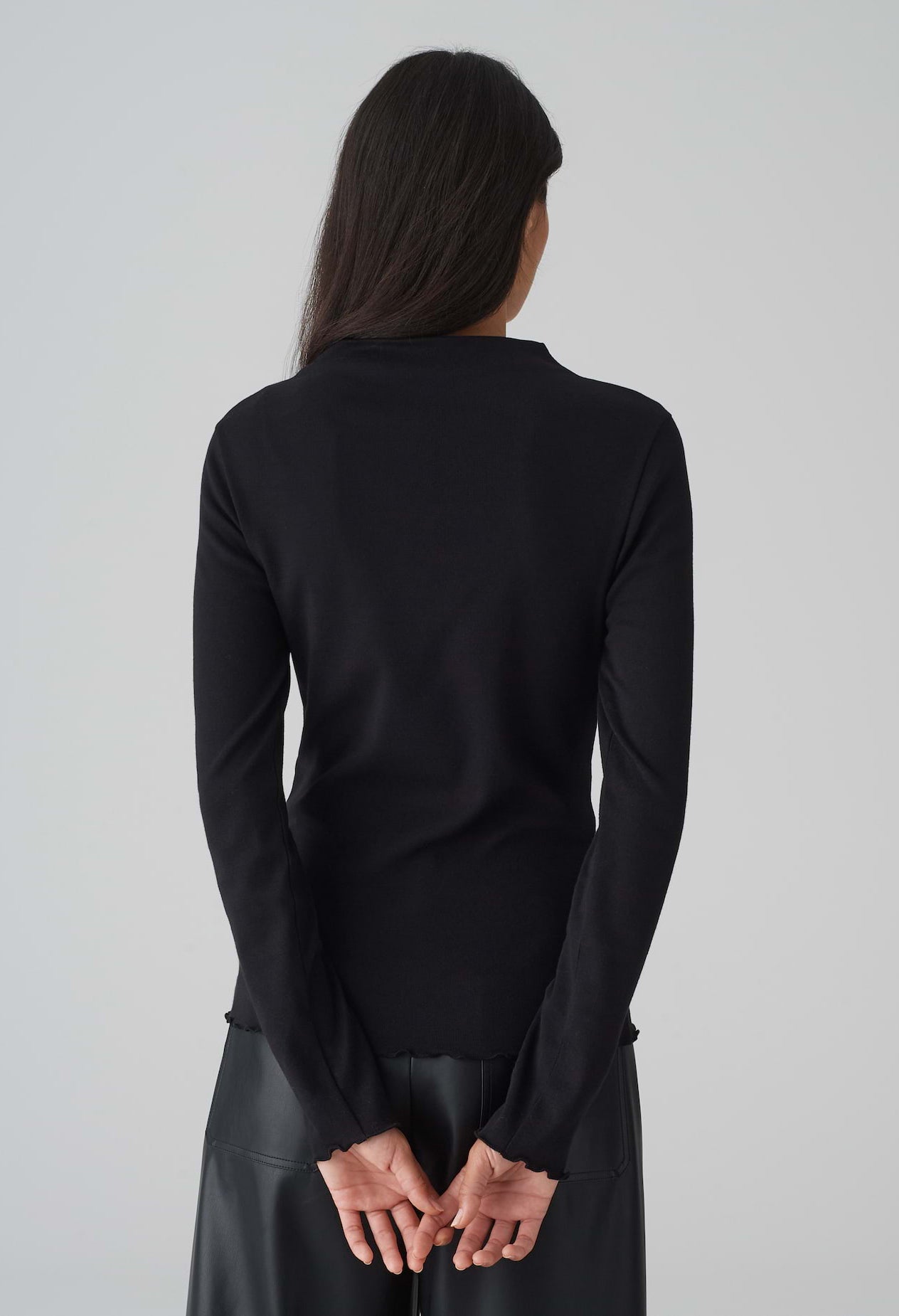 figure-hugging fit straight cut normal length Long sleeve Funnel Neck Back length approx. 64 cm for size 36 Model size 177 cm - wears size 36 fine ribbed structure elasticated fabric Rolled edges at the hem