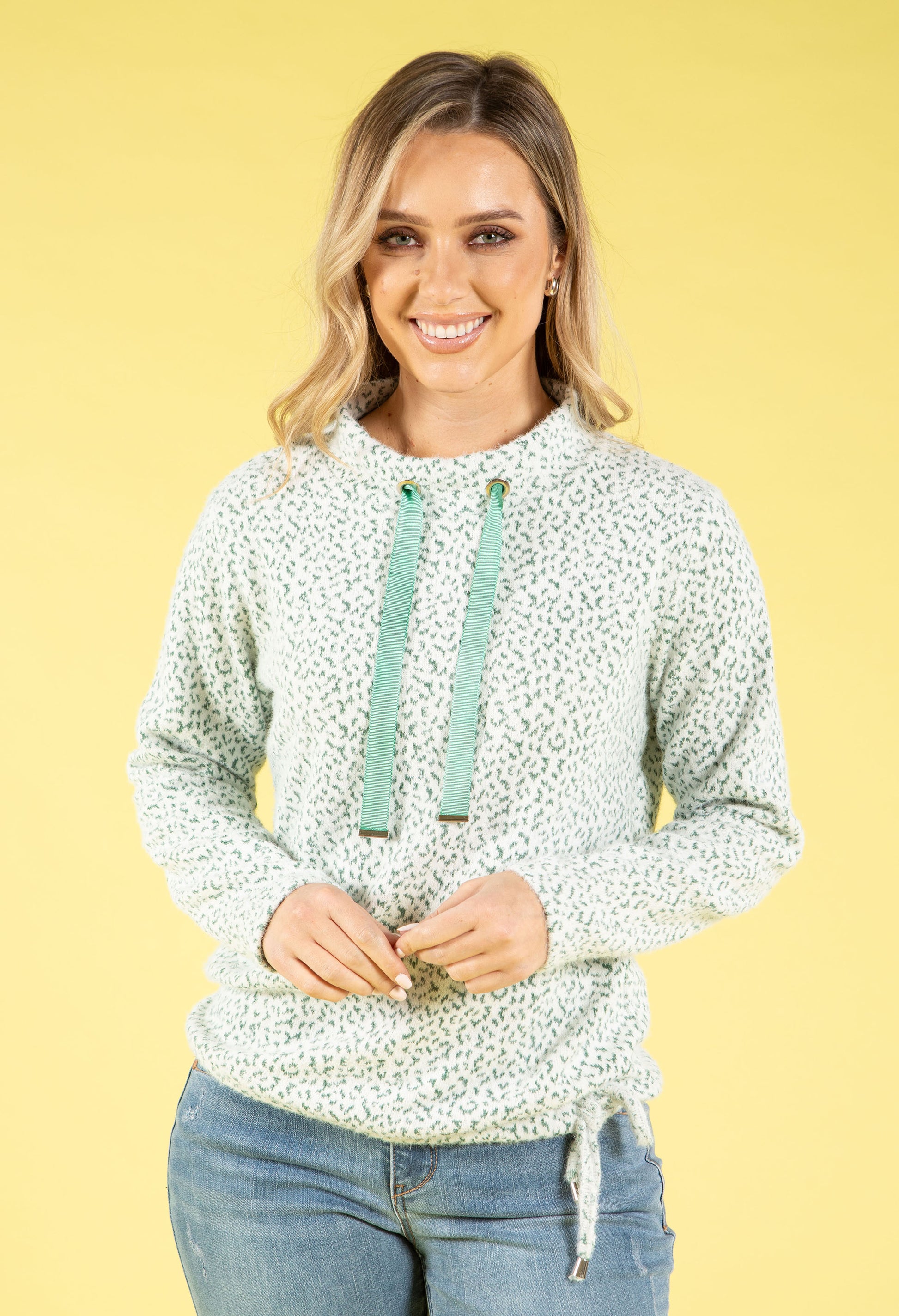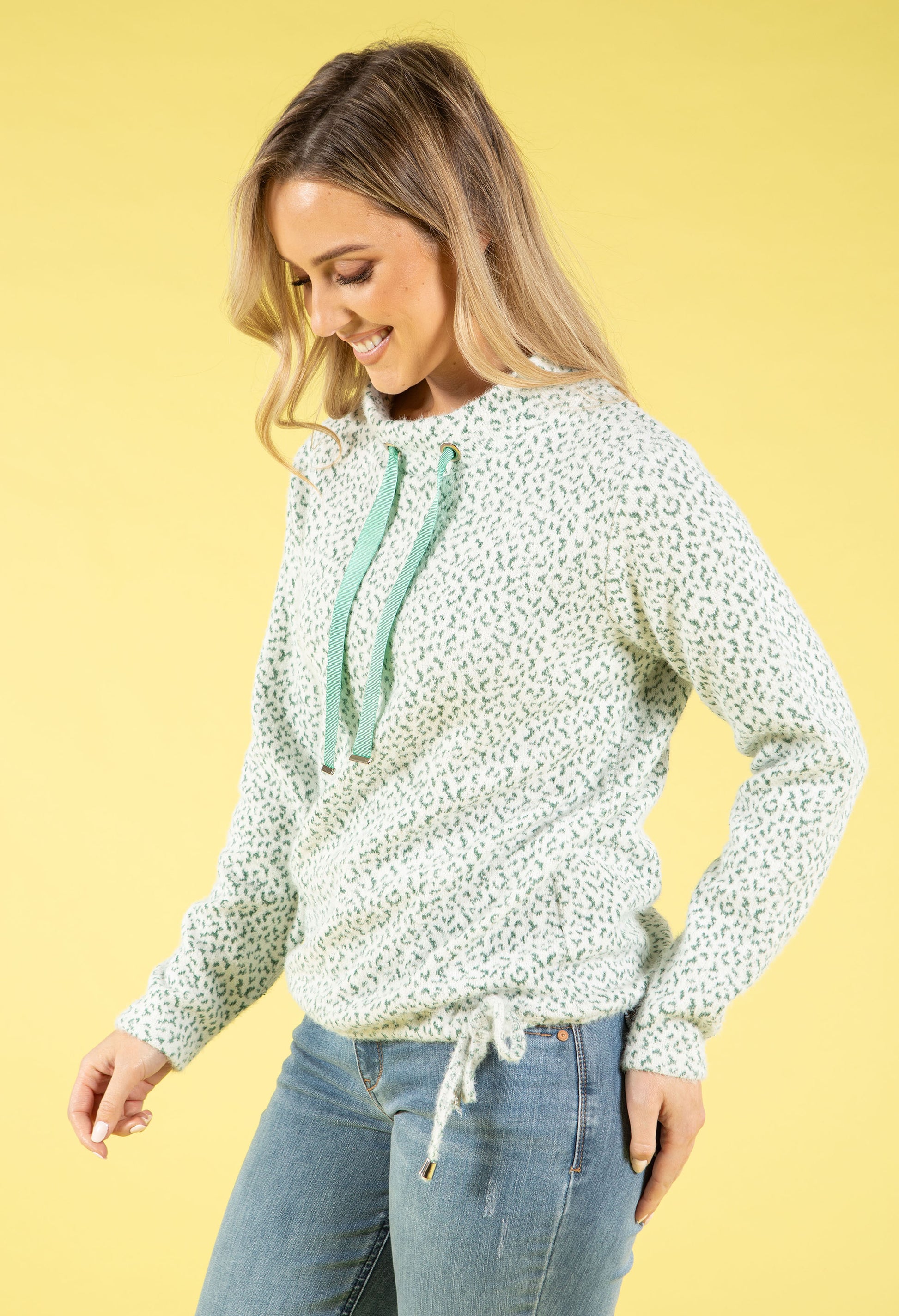 Experience luxurious softness in this Mini Leopard Print Top, featuring a high neckline and long sleeves. Designed with adjustable drawstrings at both the neck and hemline, it offers a customizable fit that blends style with comfort effortlessly.