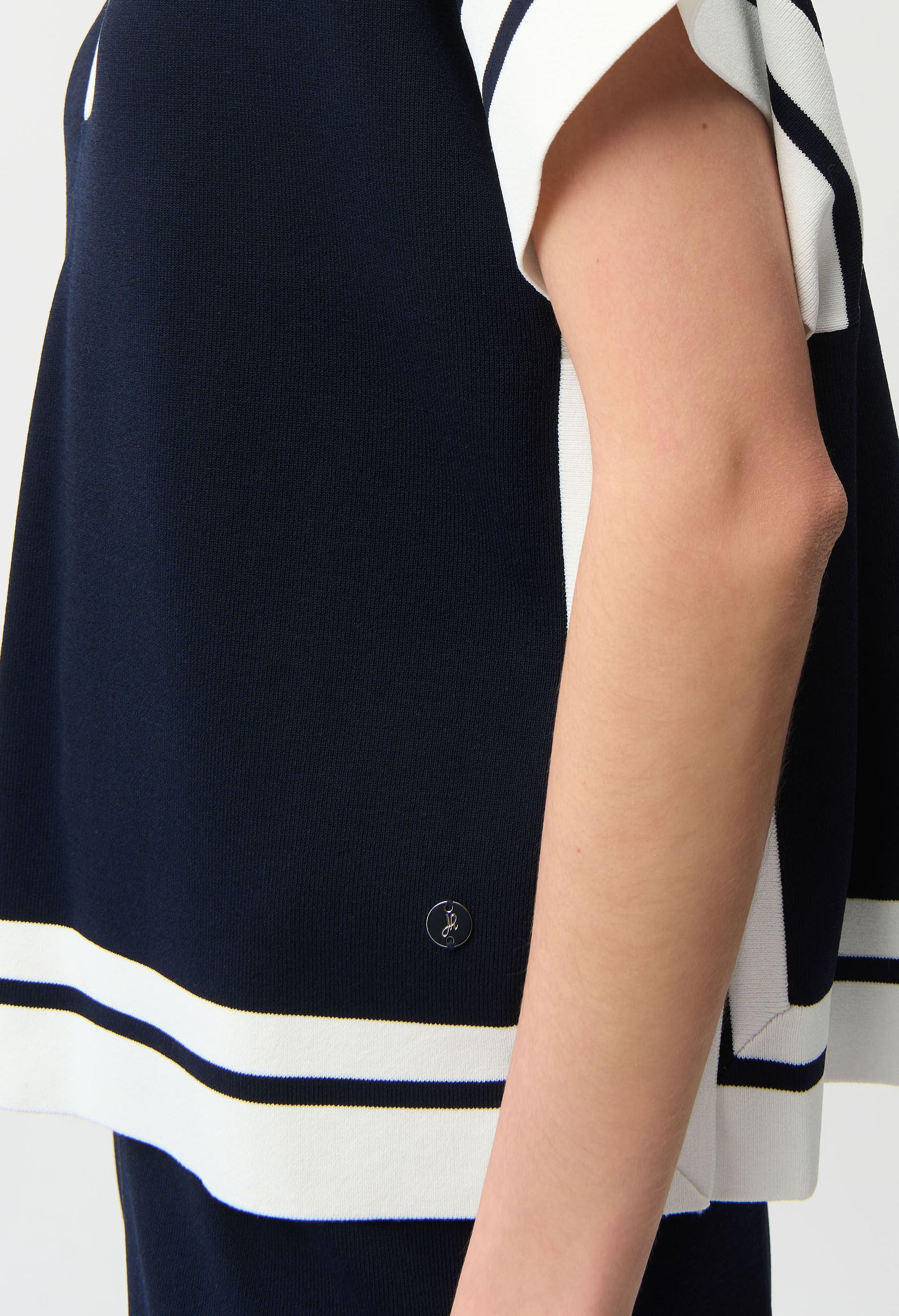 Experience the effortless elegance of the Joseph Ribkoff pullover. With its loose fit and hip-length design, this striped, collared piece offers the perfect blend of casual and office-ready style. The v-neckline and short, drop-sleeves add a touch of preppy charm, making it a versatile addition to any wardrobe. Ideal for both casual and office occasions, this pullover ensures you always look polished and comfortable.