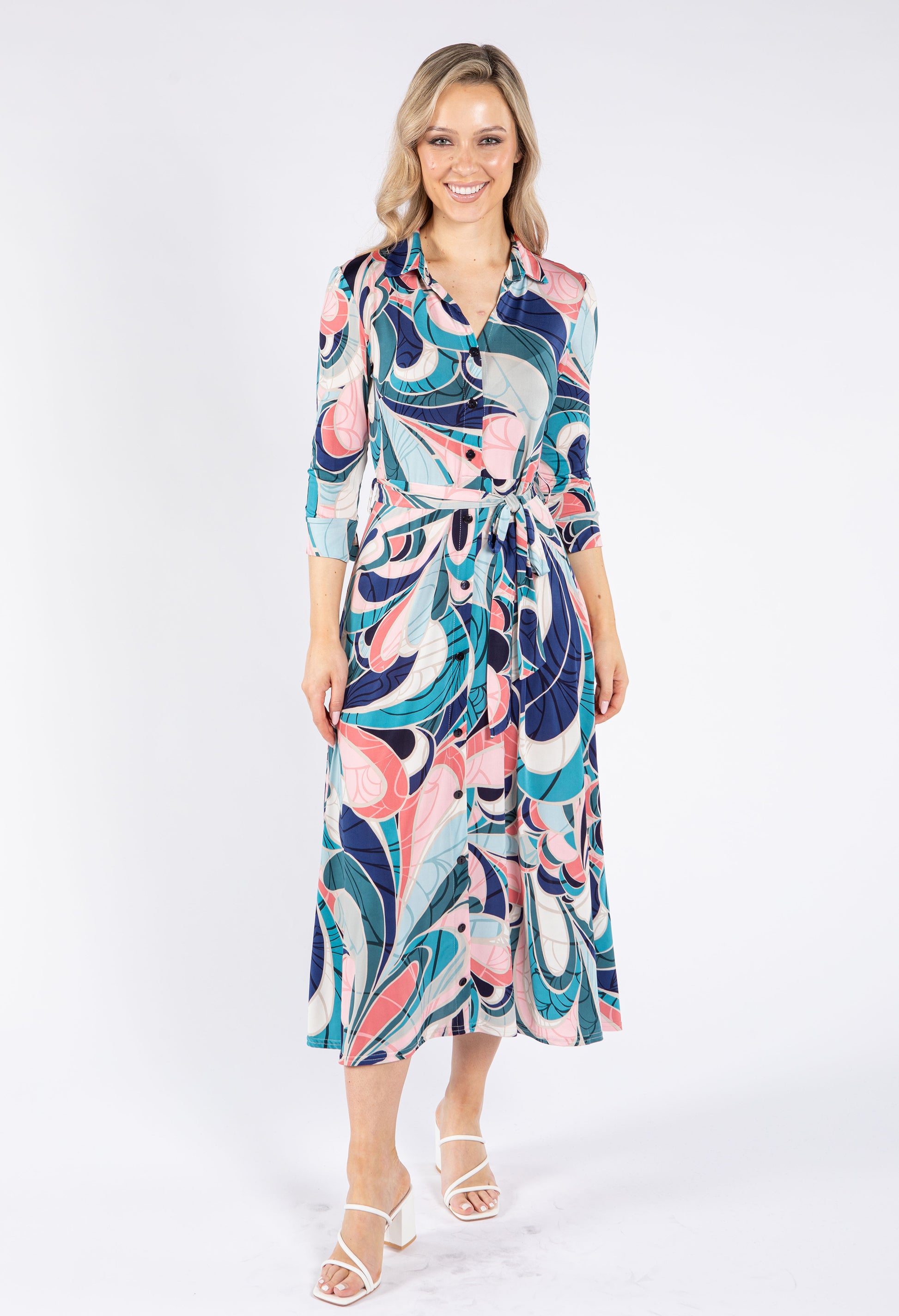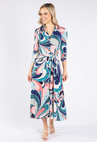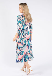 Zapara Swirl Print Tie Waist Dress