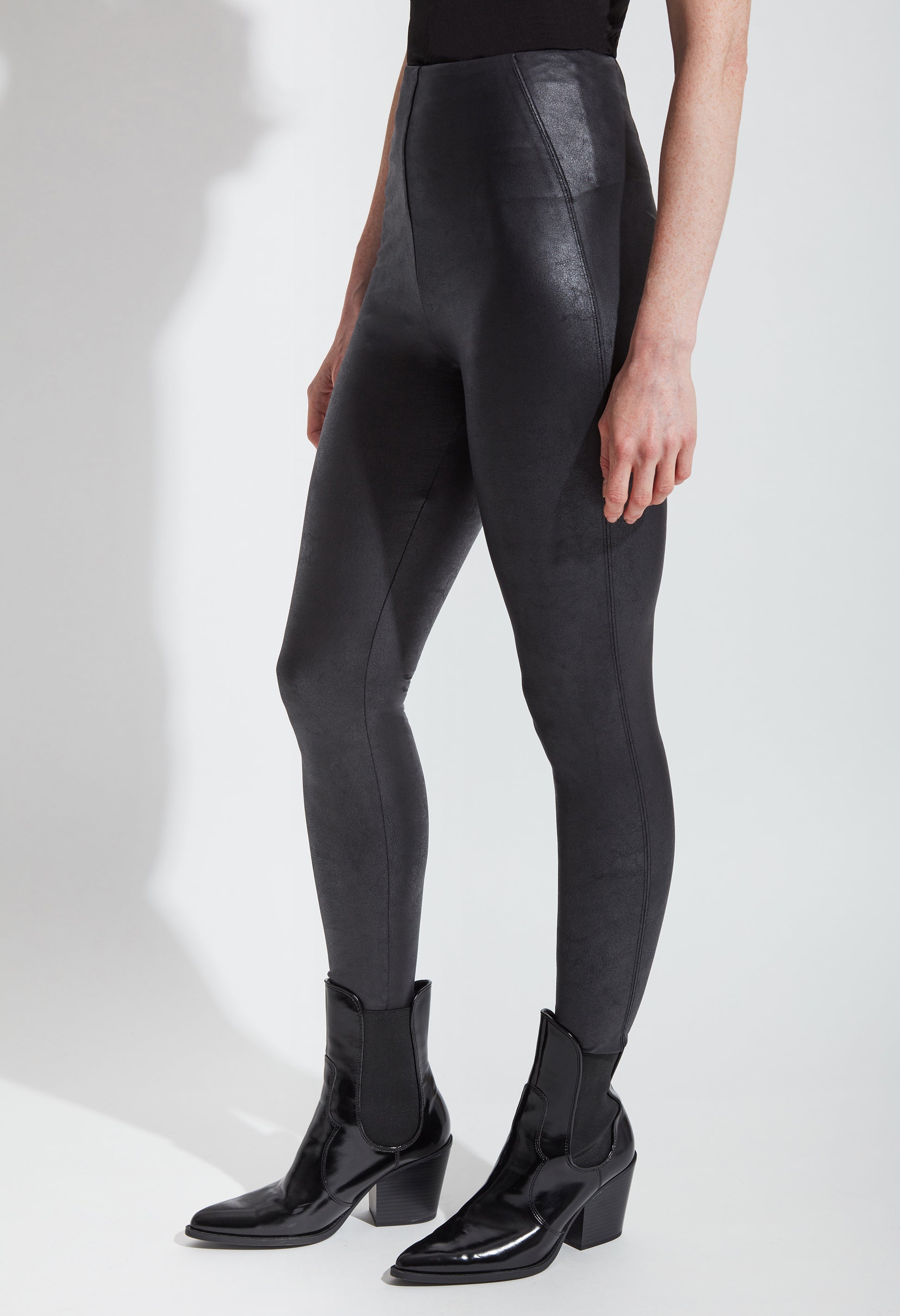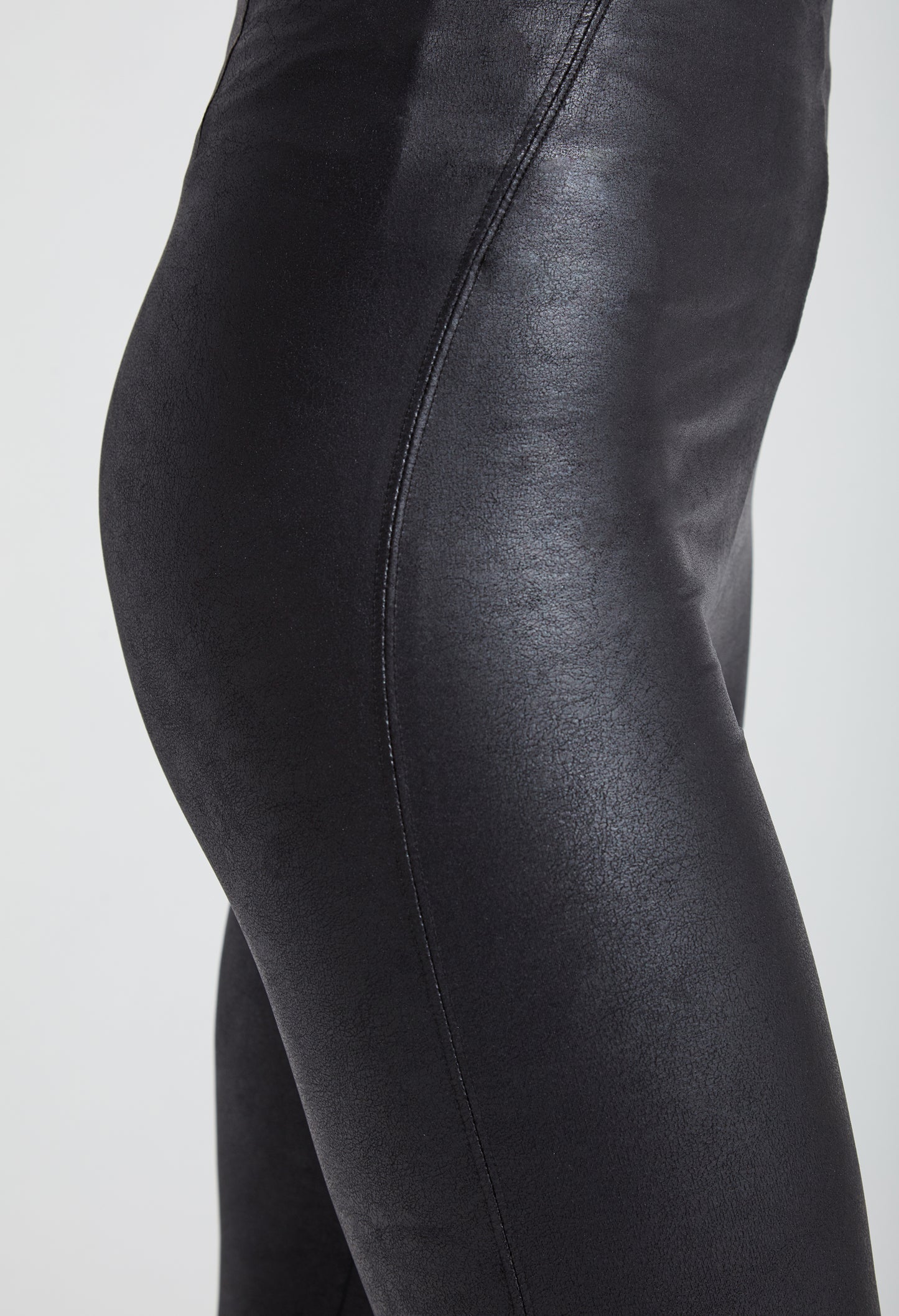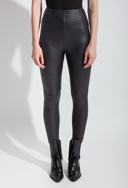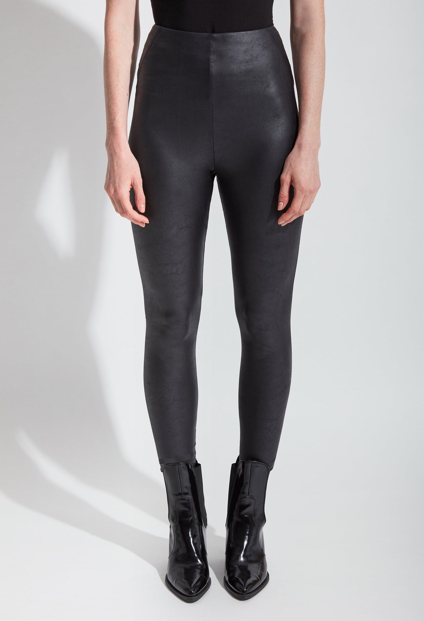 Offering pleasant 4-way stretch and a waist that’s 1.5 inches higher than Lyssé’s standard, the  Legging is crafted from a lightweight, yet contemporary Foiled Faux Leather. Crafted using a foil lamination technique on matte faux leather, these high-waisted faux leather leggings offer a smoothing, concealed patented 360° smoothing waistband and full-length, season-less style.