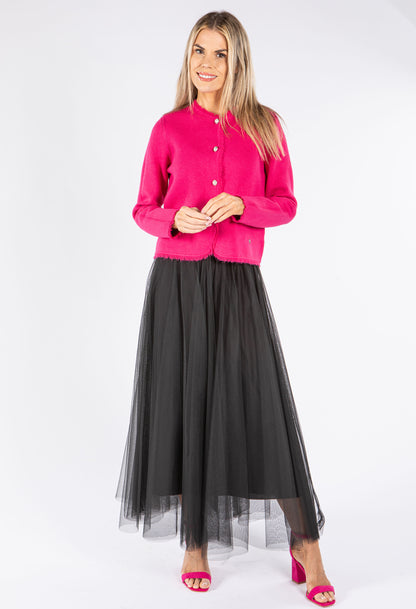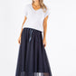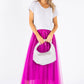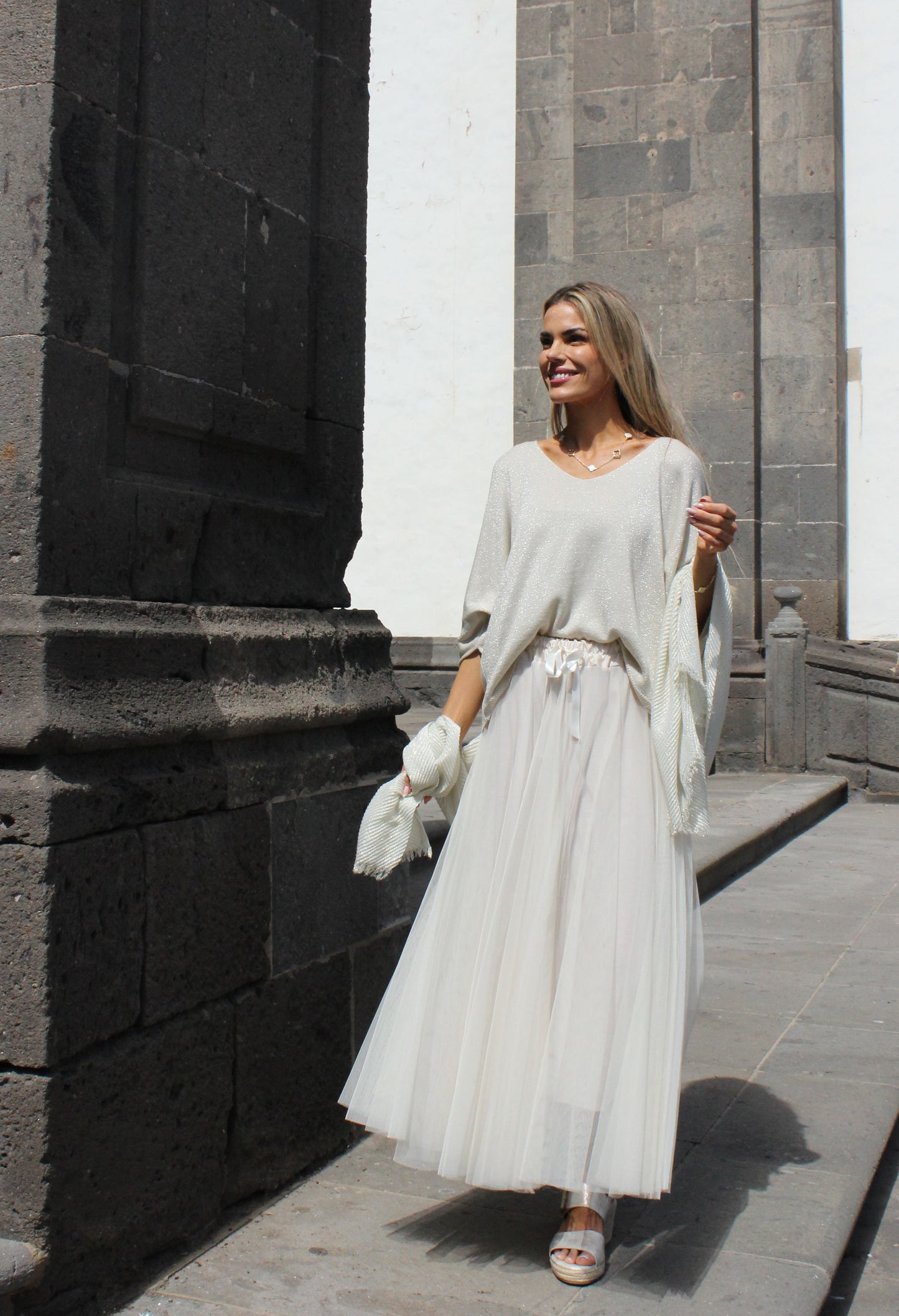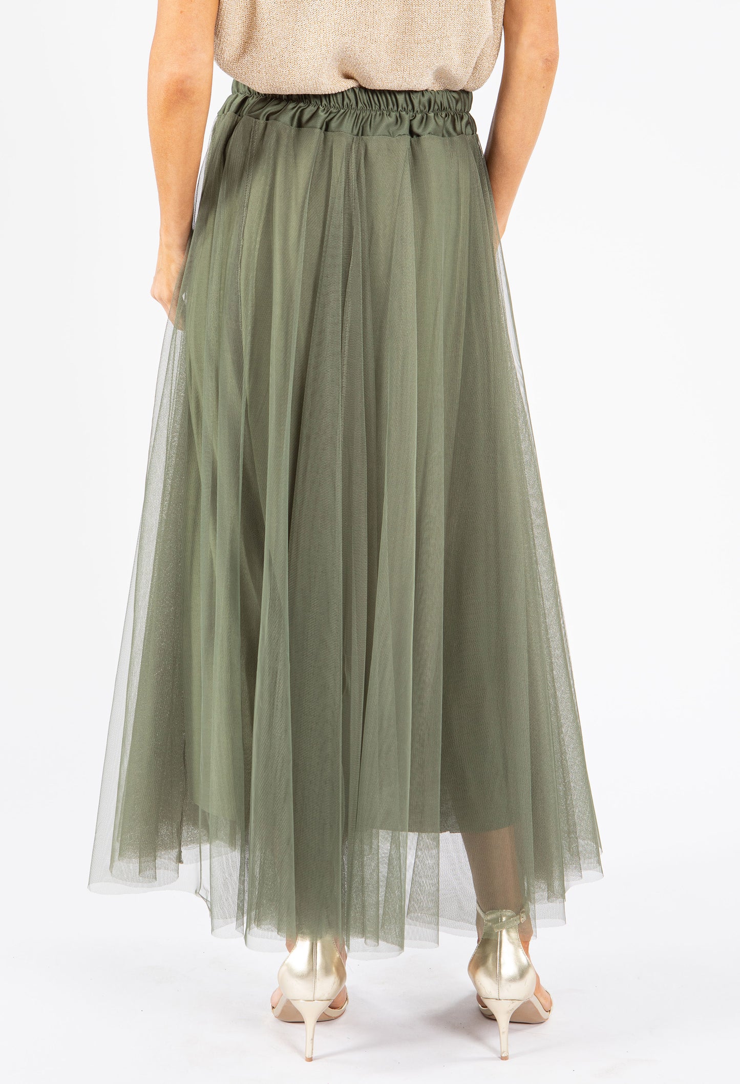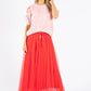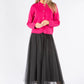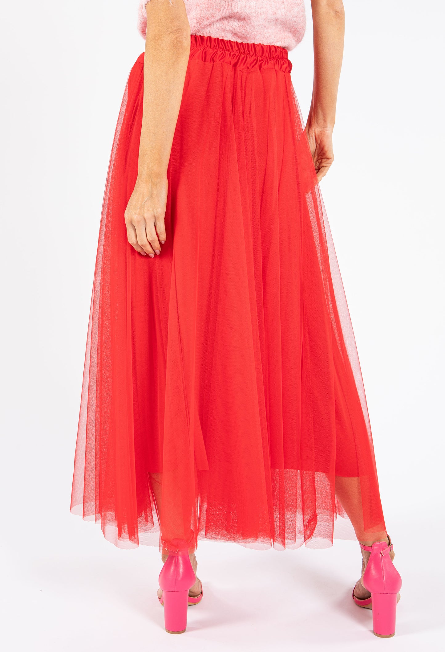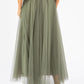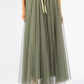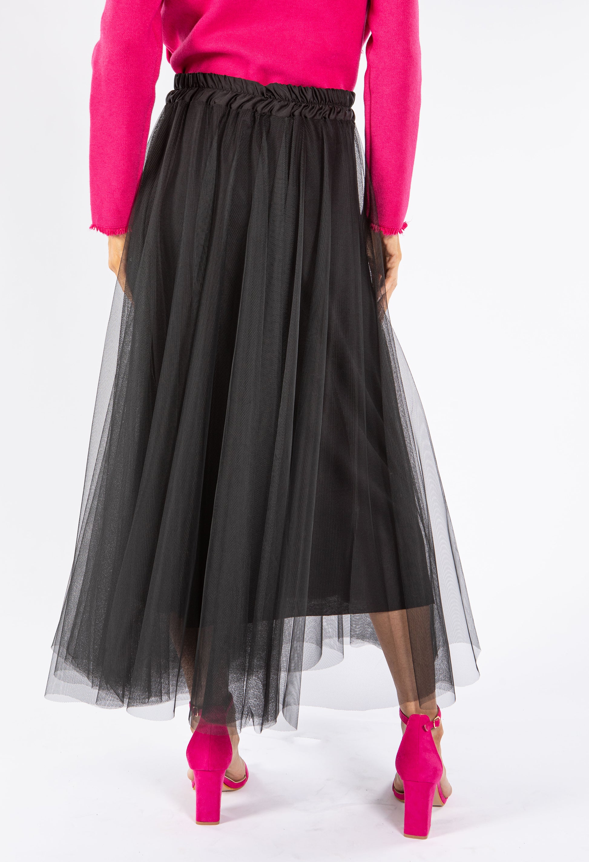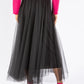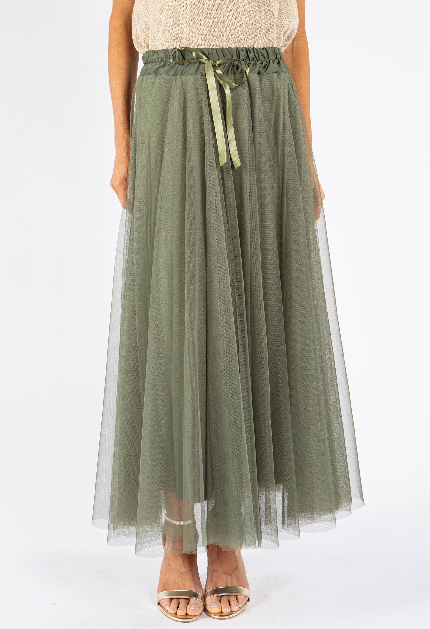 Elegant tulle skirt featuring a comfortable satin elasticated waistband with charming bow accent. Fully lined for comfort with a flowing tulle overlay. Versatile free size accommodates sizes 8-14.