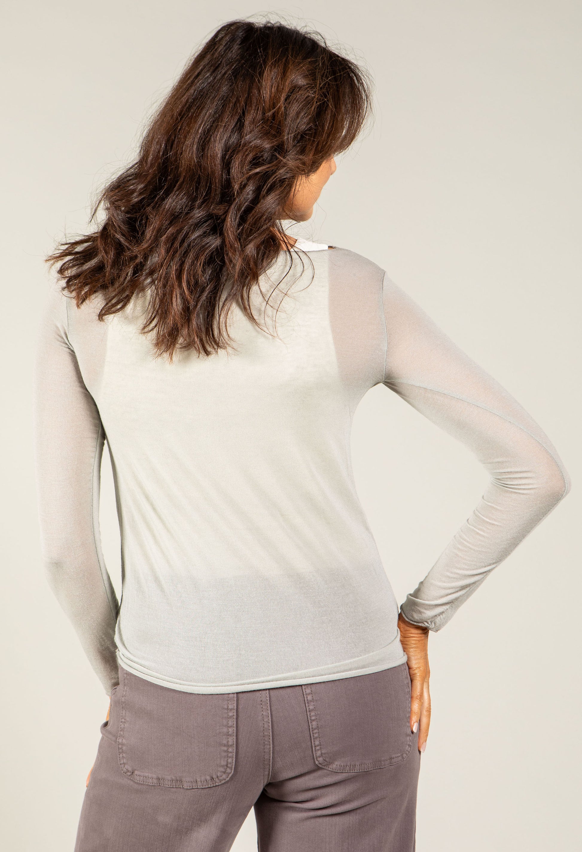 This exquisite top features a boat neckline and long sleeves, crafted from a luxurious cashmere blend with stretch for comfort. Ideal for effortless layering, it combines softness with refined elegance.
