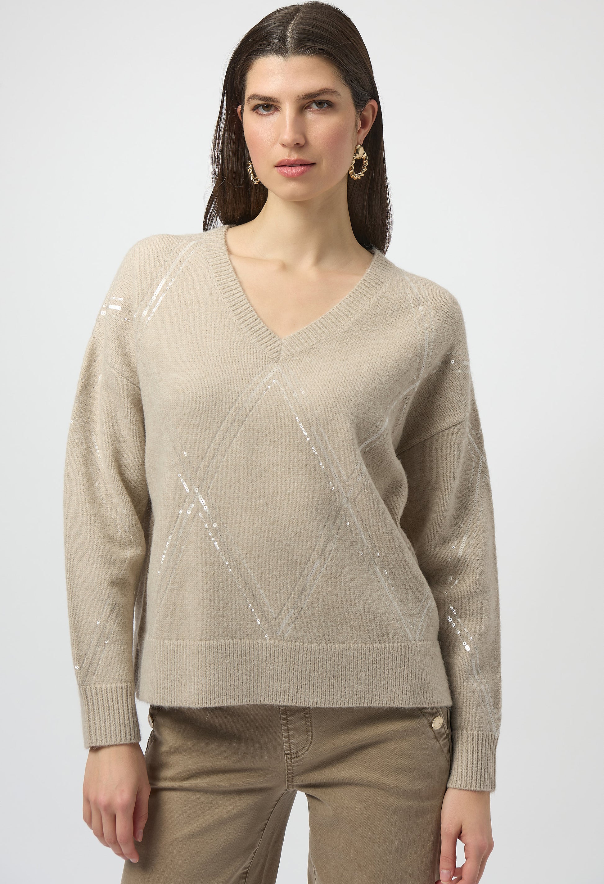 Step into sophistication with this Joseph Ribkoff pullover. Featuring a chic V-neck and long, straight sleeves, this hip-length piece combines a regular fit with a stunning array of jewels, sequins, and diamond patterns. Perfect for casual, office, or semi-formal occasions, its plain and geometric design adds a touch of elegance to any ensemble. Ideal for those who appreciate a blend of casual and sophisticated style.