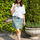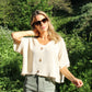 Lifestyle Image- Beige: Jeans, Sunglasses.