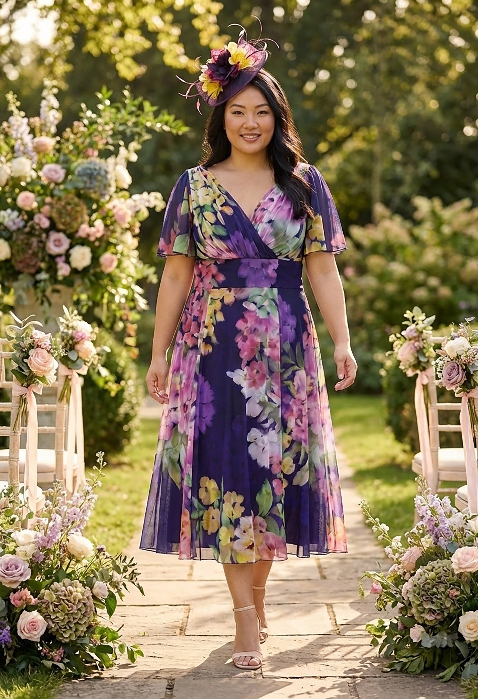 The Victoria Angel Sleeve Mesh Midi Curve+ Dress is made with POWERFIT® mesh fabric that is both stylish and breathable. It features a MagicBand® and built-in corset to enhance your curves and highlight your Scarlett & Jo hourglass figure. The deep V-neck wrap adds a touch of femininity, while the angel sleeves provide coverage for the upper arms. Choose to add or remove the detachable shoulder pads for your personal preference.