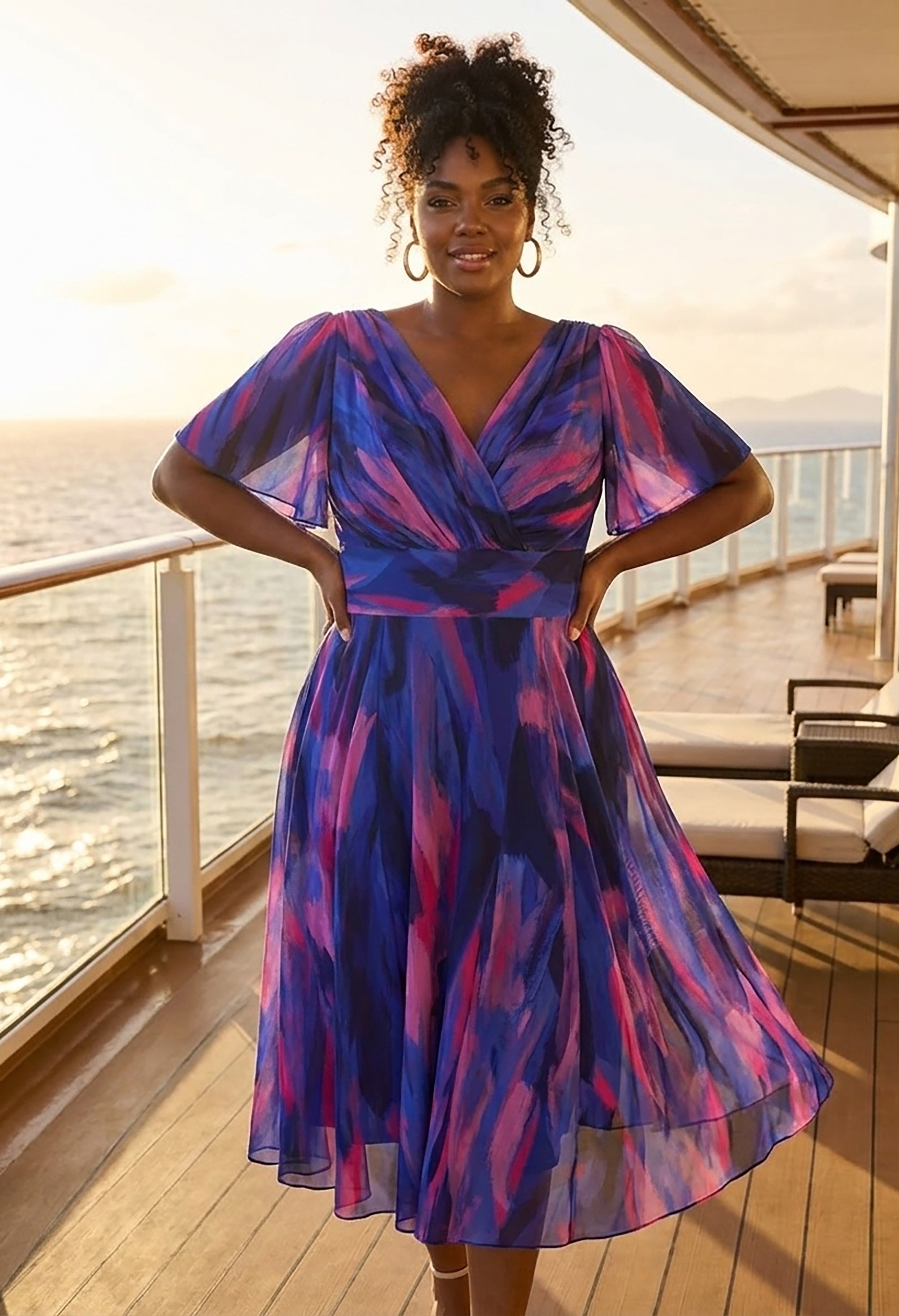 The Victoria Angel Sleeve Mesh Midi Curve+ Dress is made with POWERFIT® mesh fabric that is both stylish and breathable. It features a MagicBand® and built-in corset to enhance your curves and highlight your Scarlett & Jo hourglass figure. The deep V-neck wrap adds a touch of femininity, while the angel sleeves provide coverage for the upper arms. Choose to add or remove the detachable shoulder pads for your personal preference.