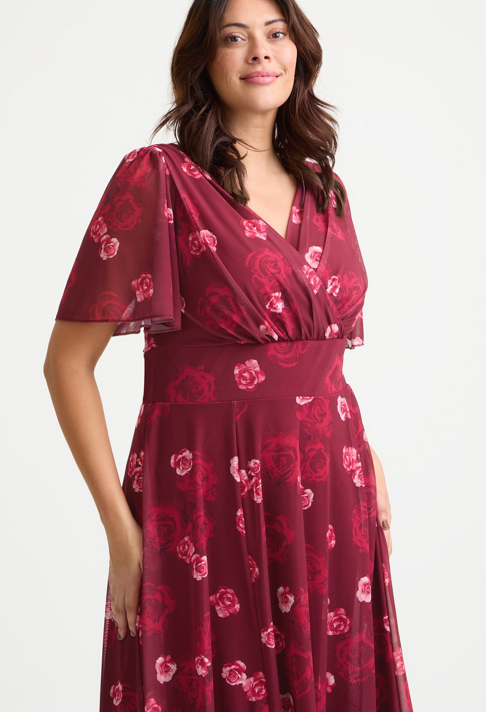 Scarlett & Jo Victoria Angel Sleeve Mesh Midi Curve+ Dress