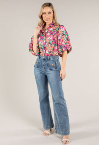 The Trend Room Vintage Floral Balloon Sleeve Blouse