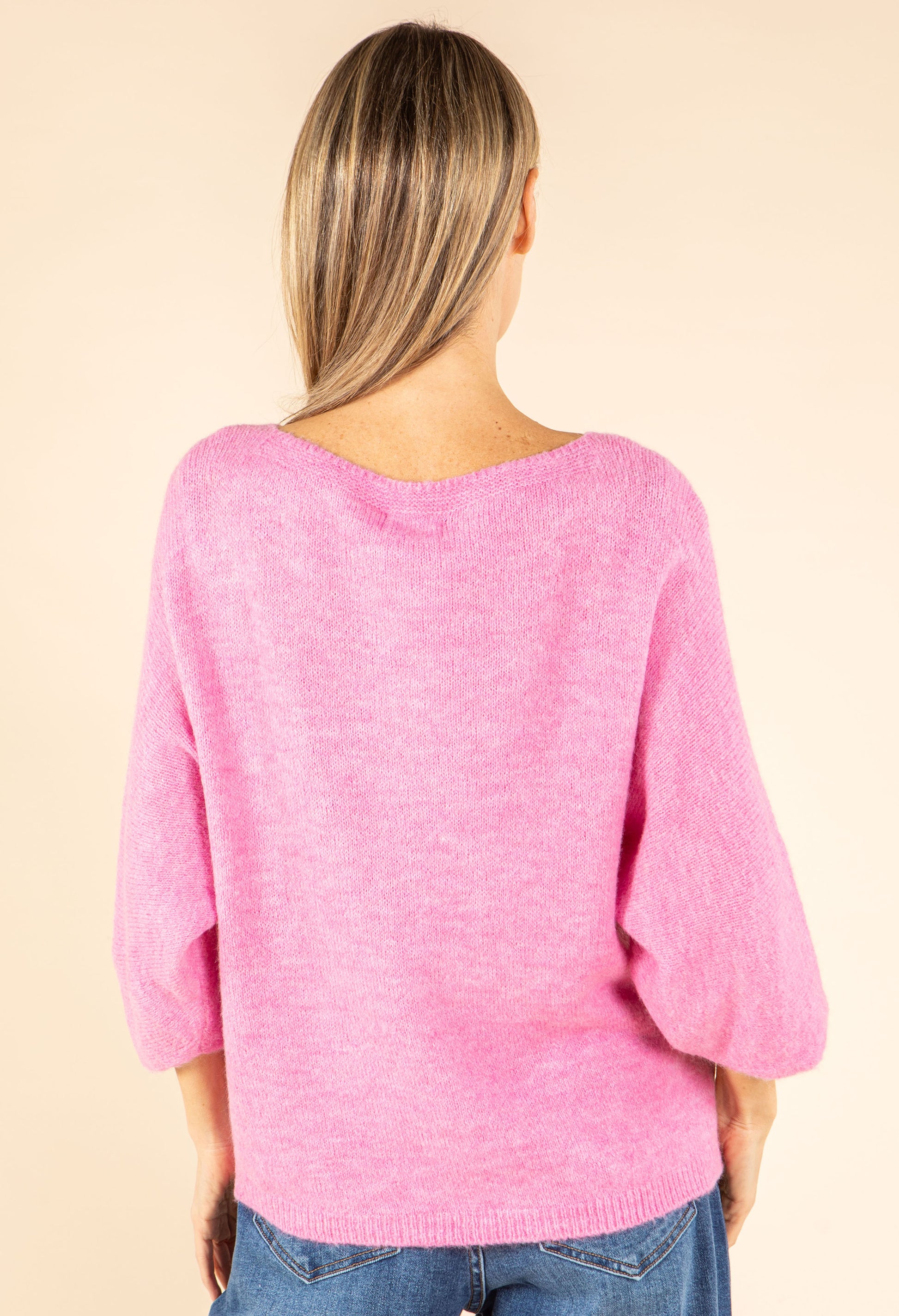 Add a feminine touch to your wardrobe with this Floral Print Knit Jumper, crafted from a cozy wool blend. Featuring a round neckline, batwing 3/4 sleeves, and a ribbed hem, it offers effortless style and comfort.
