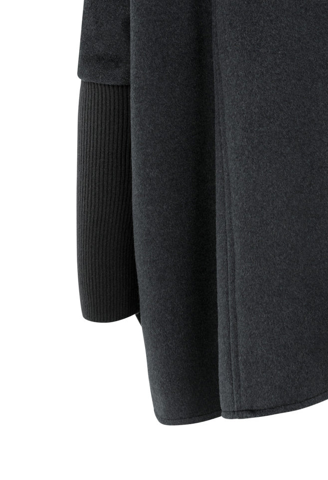 This stylish poncho is made from a soft fabric and designed with a comfortable, relaxed fit. The high turtleneck and ribbed sleeves provide extra warmth, while the large flap pocket adds a contemporary touch. Perfect for layering over a blouse or sweater to create an elegant look on colder days.